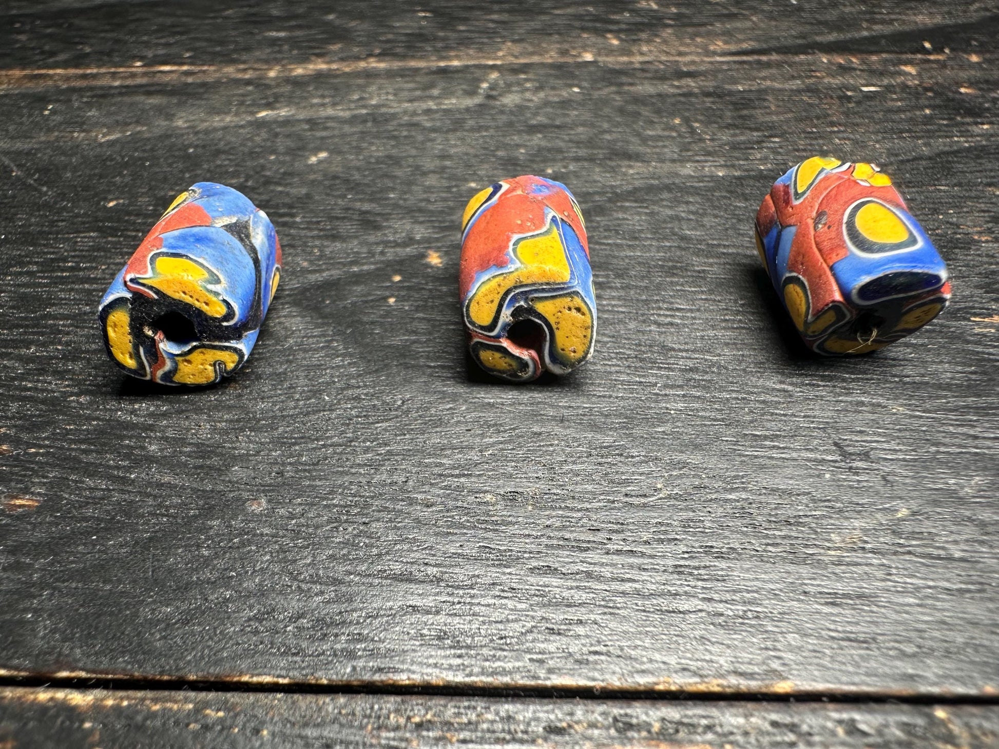 3 Pics Rare Venetian Millefiori Beads | African Trade Beads | Vintage Cylinder Glass Beads for Crafts