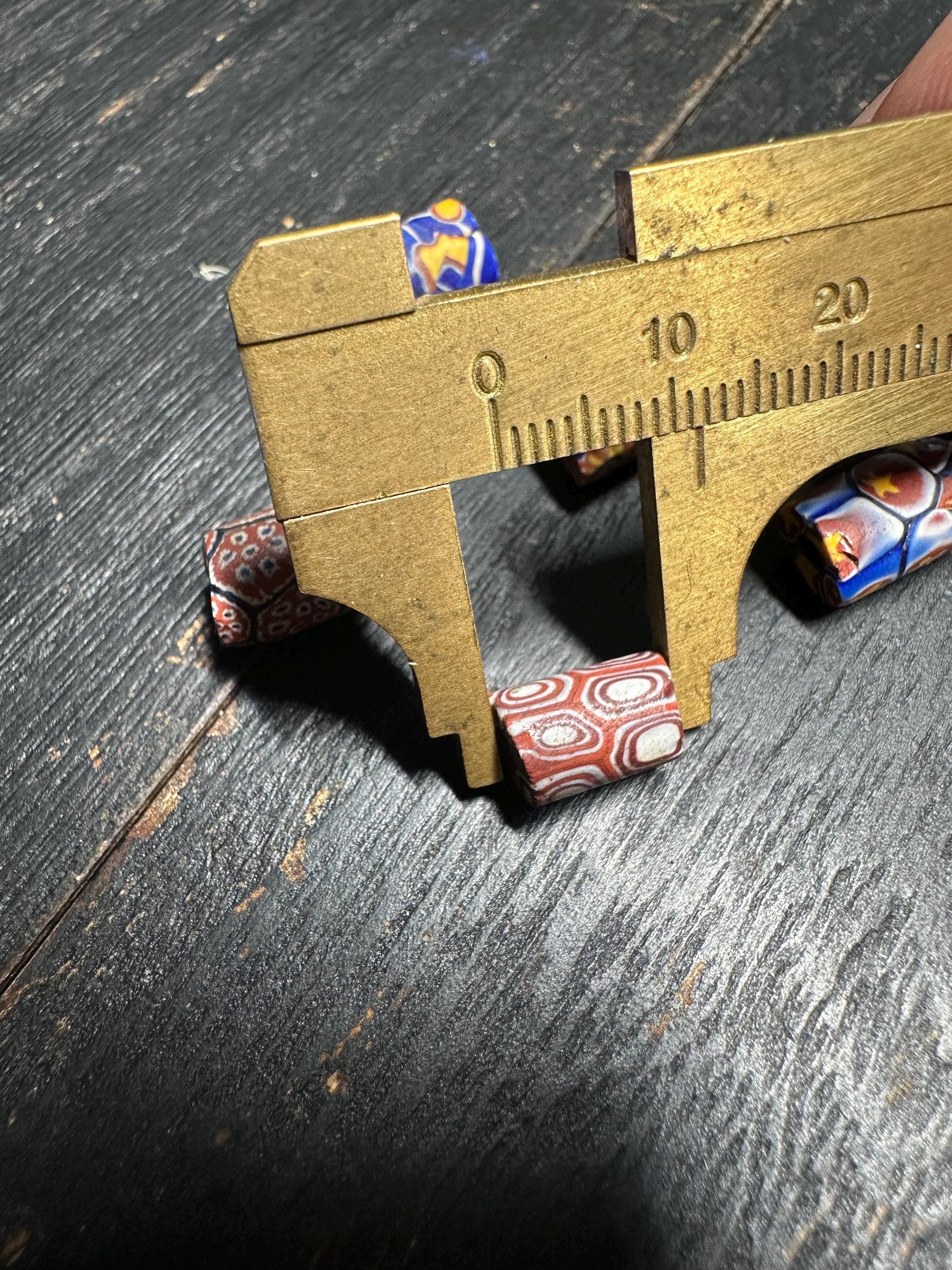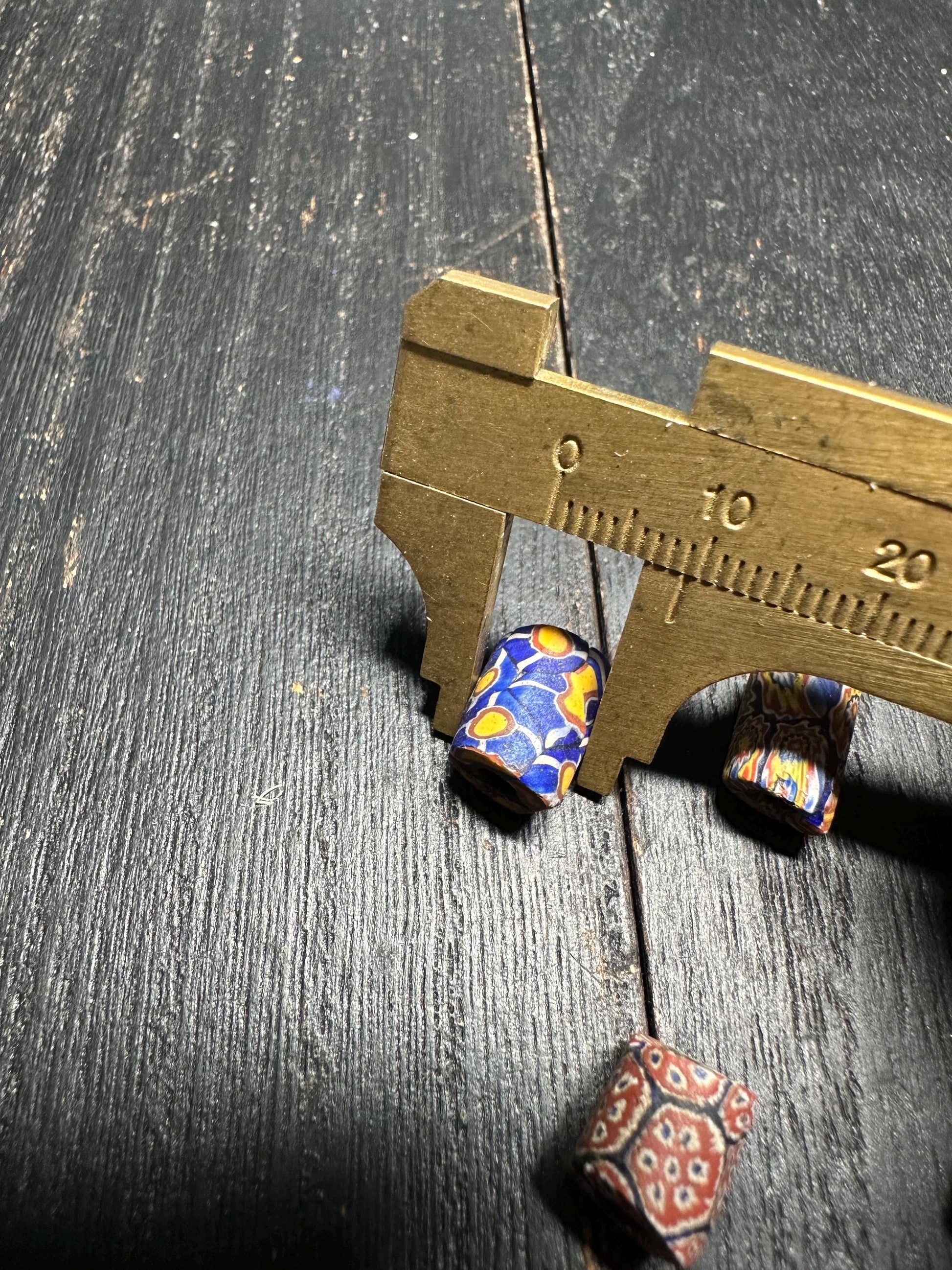 Discover the beauty of history with these antique Venetian Millefiori African trade beads. These hand-crafted glass beads were originally made in Venice and later traded across Africa. Each bead features intricate floral patterns in shades of blue, red, and white, showcasing the stunning millefiori technique. These beads are perfect for collectors, jewelry designers, or anyone who appreciates vintage and tribal art.