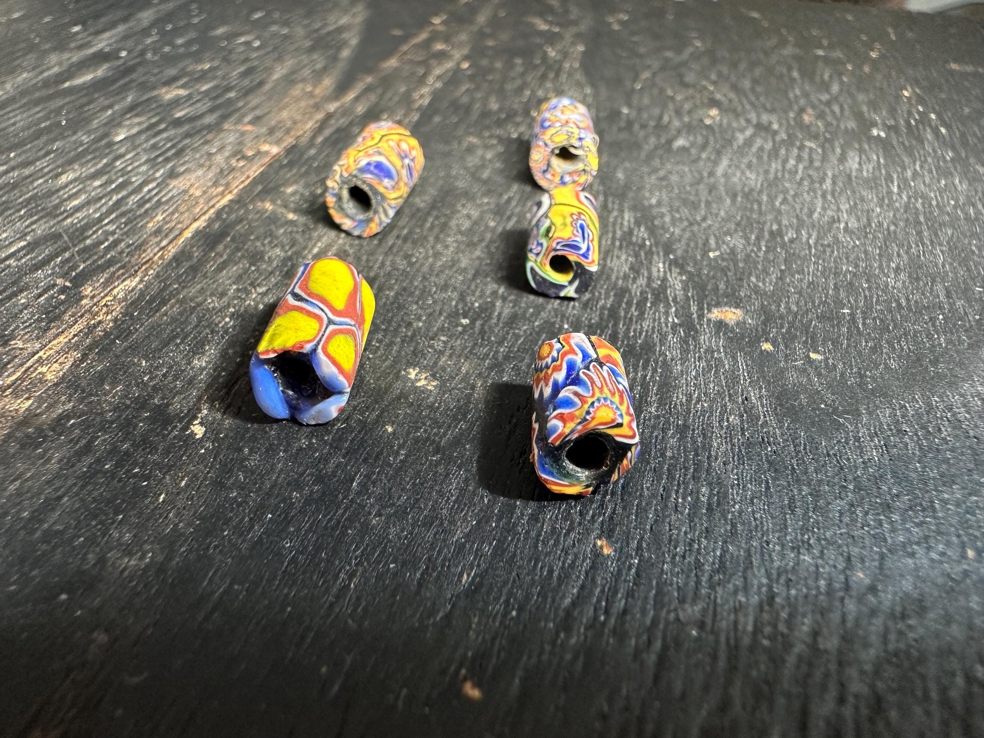 5 Vintage Millefiori African Trade Beads Rare Venetian Glass Cylinder Beads Jewelry Supplies
