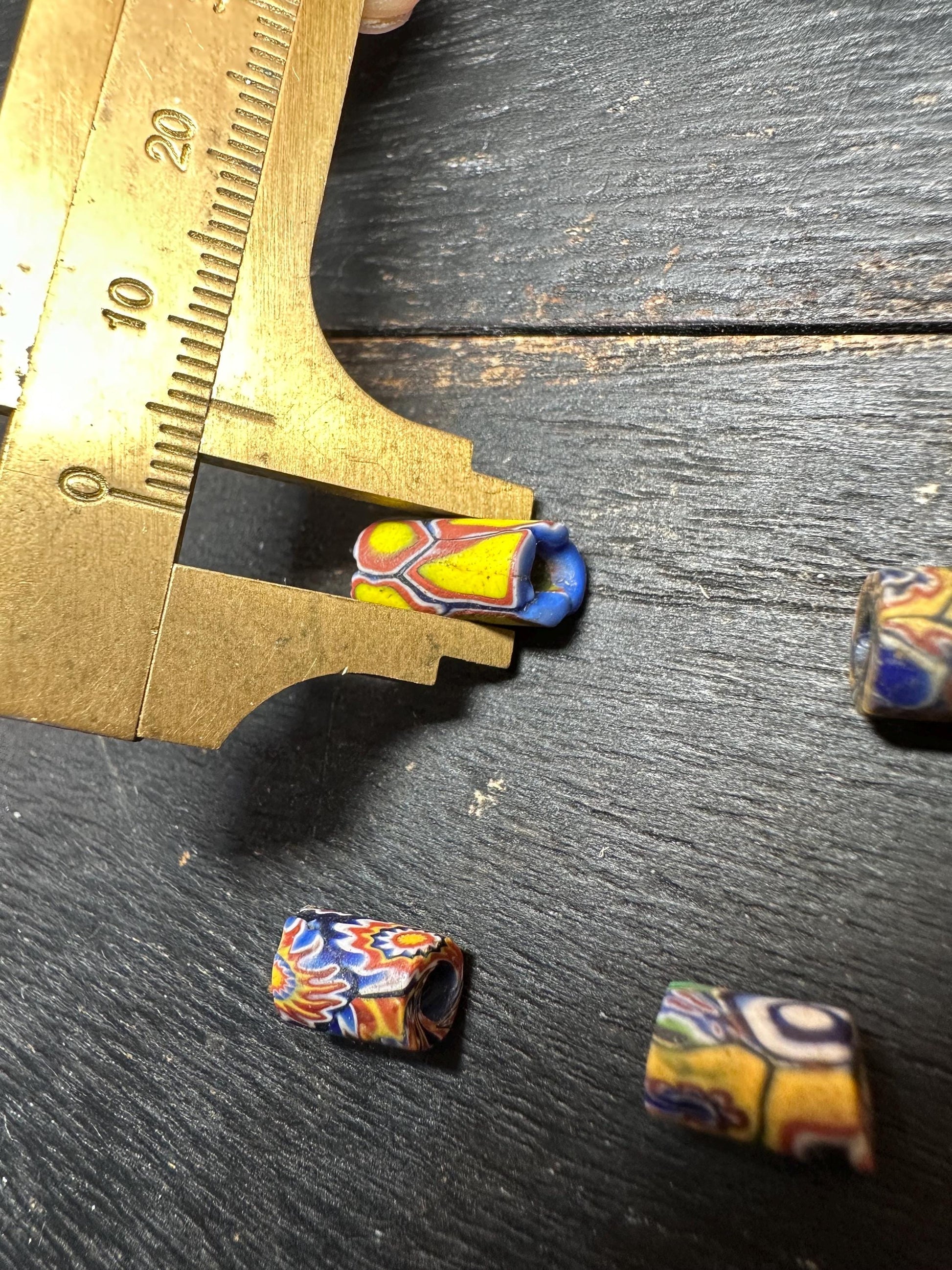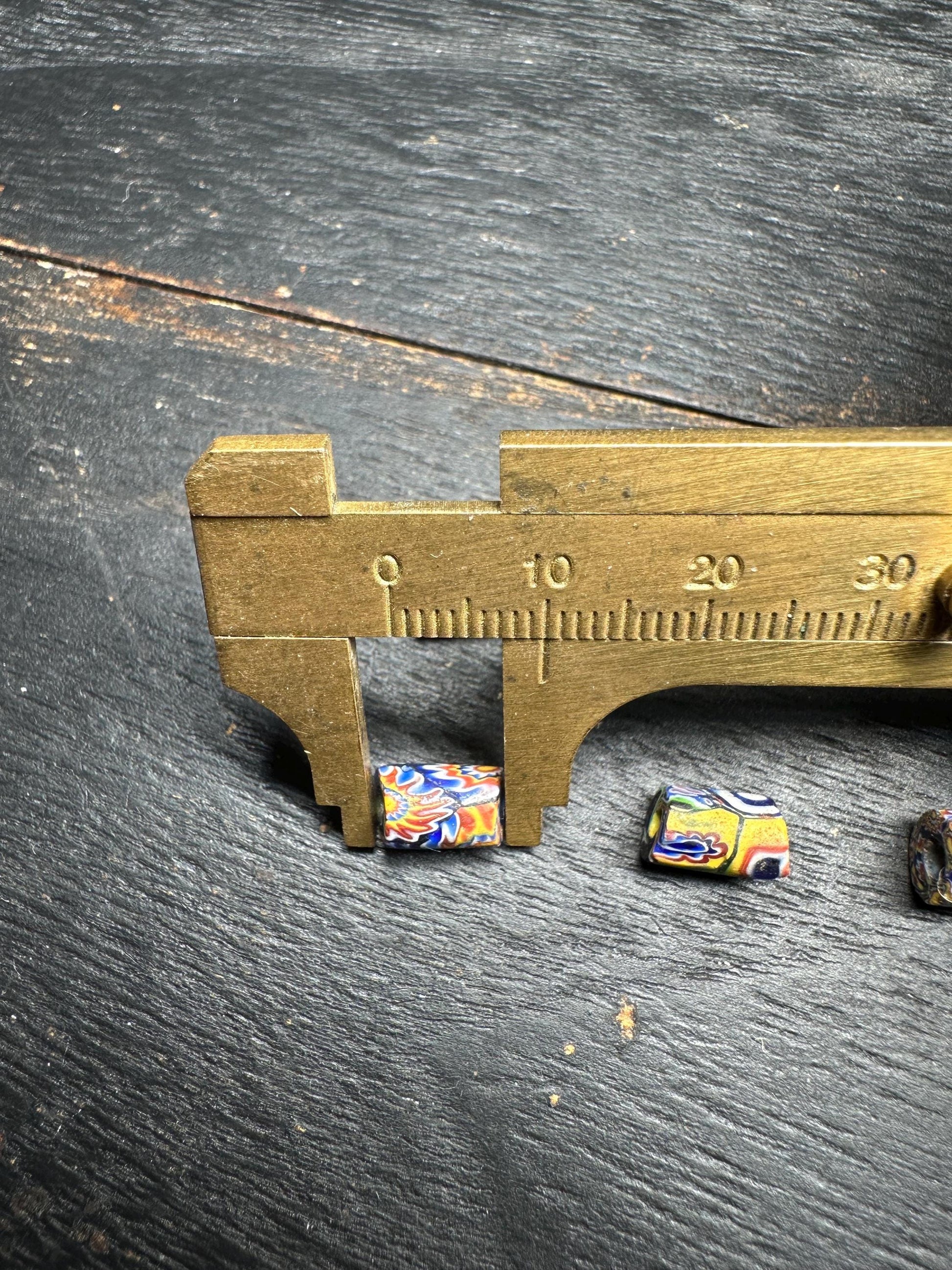 Add a touch of global history to your jewelry with these stunning Antique Millefiori Glass Beads, handcrafted in Venice and once traded across Africa in the 19th to early 20th centuries. Each bead is a unique work of art, featuring vibrant mosaic patterns in rich reds, blues, yellows, and white — a true testament to the Millefiori (“thousand flowers”) glassmaking technique.