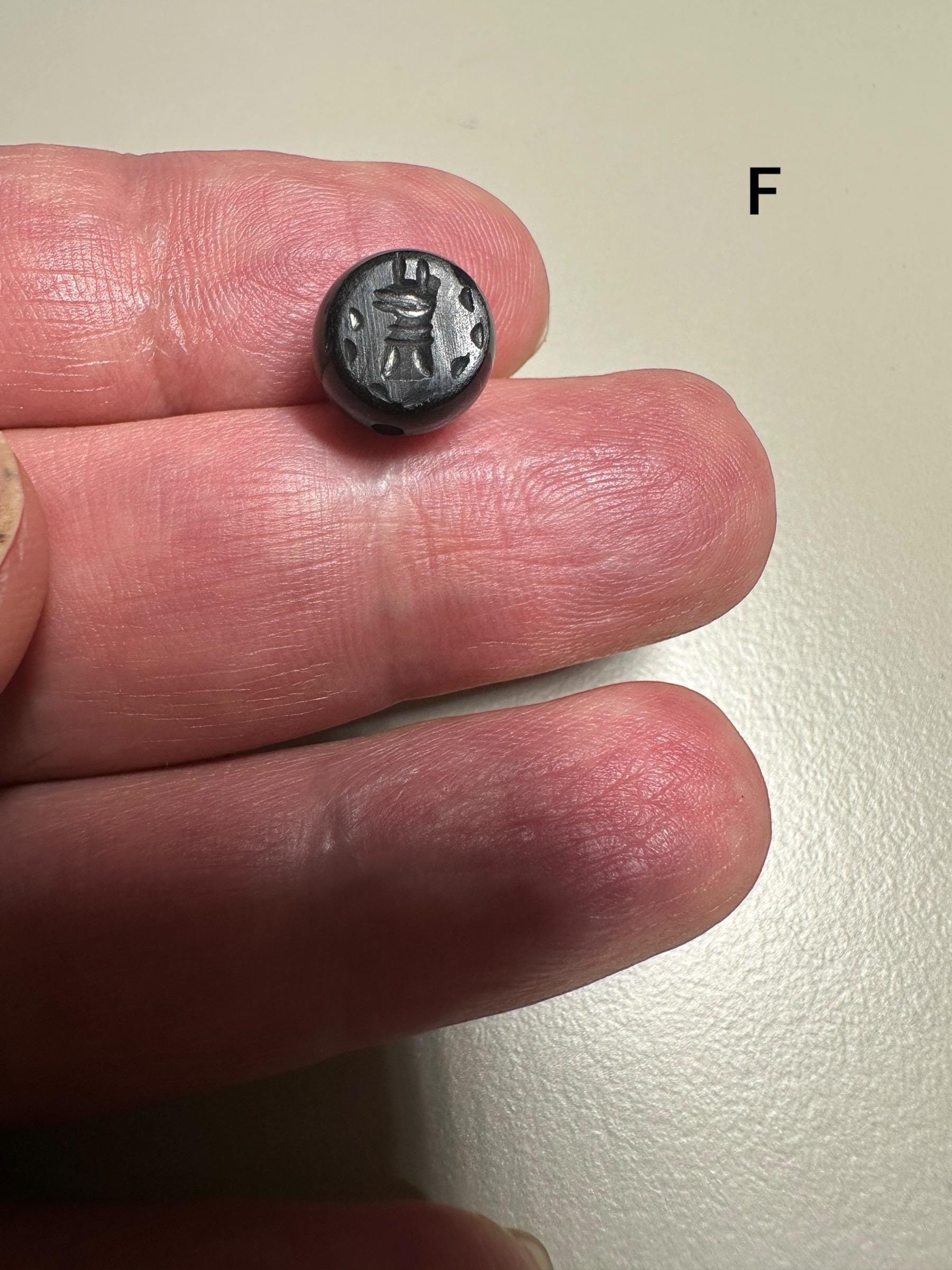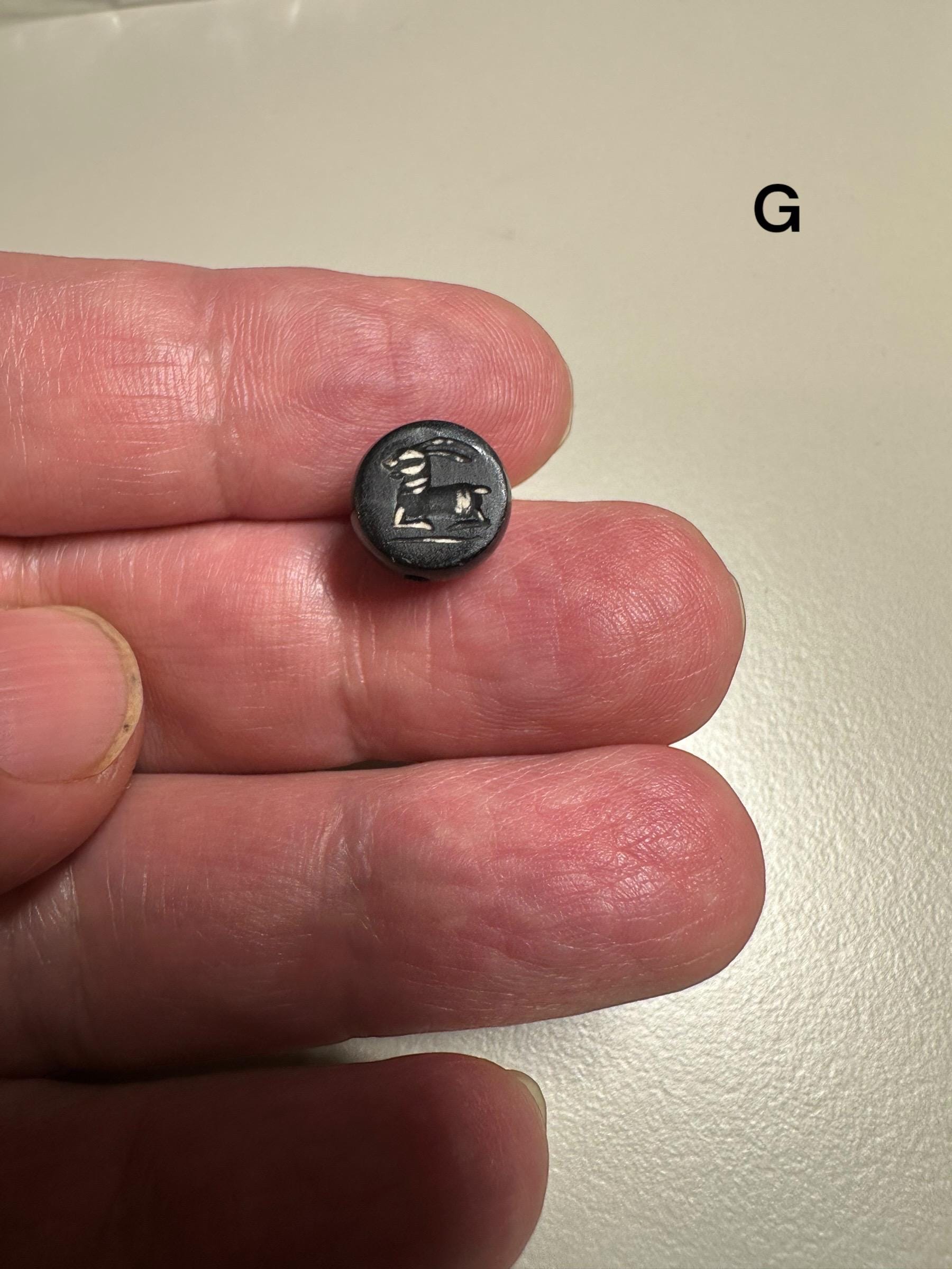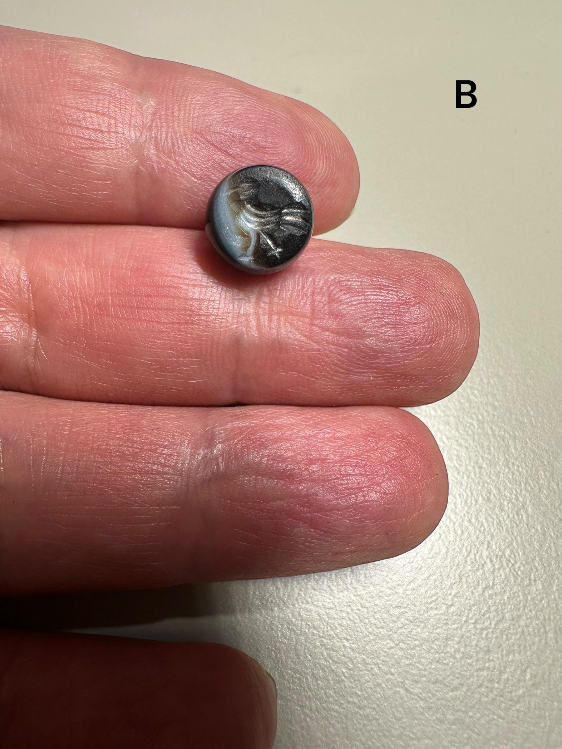 Afghan Style Intaglio Seal Bead Natural Banded Agate Hand-Carved Animal Design, Collectible Stone