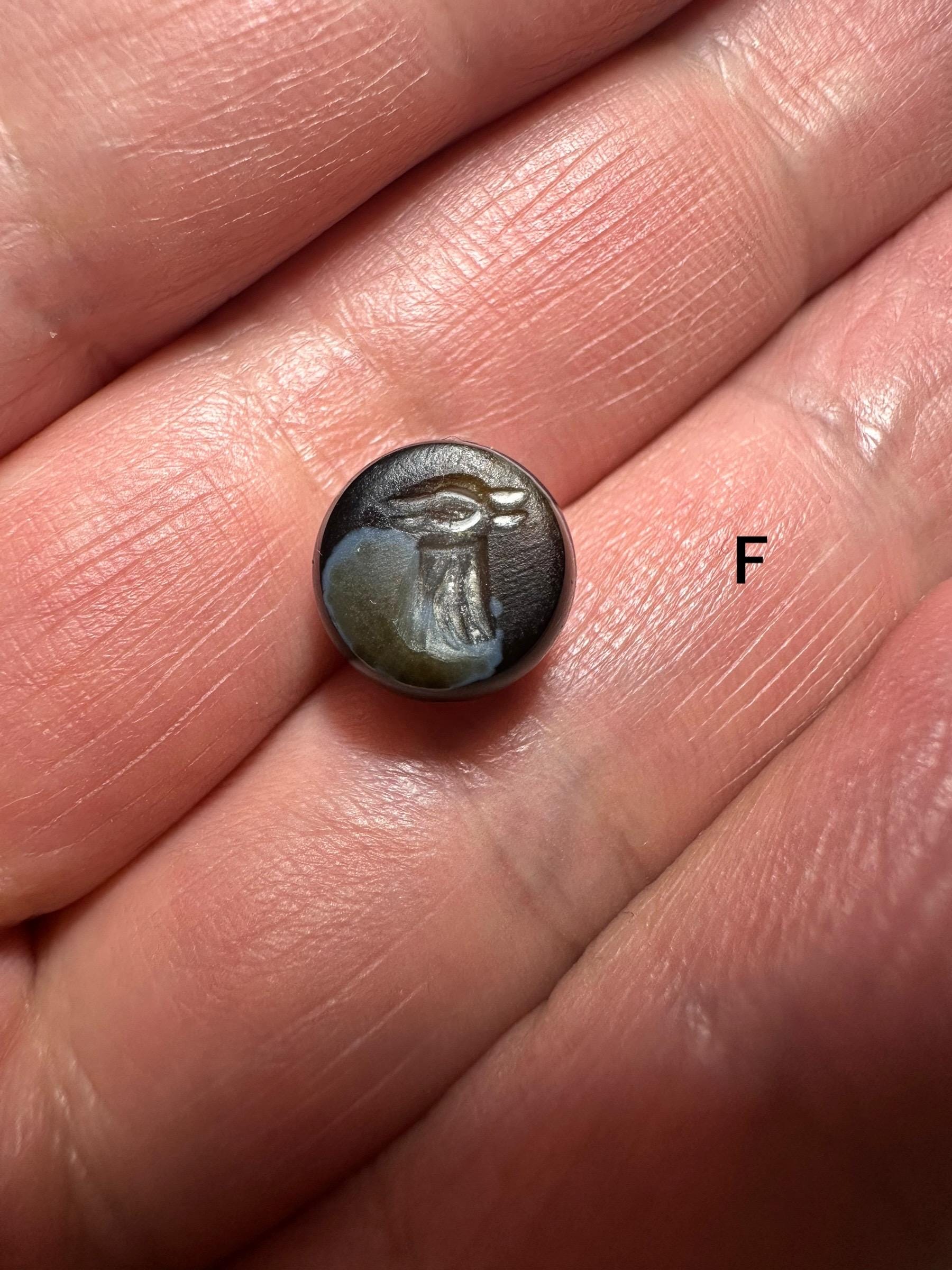 Afghan Style Intaglio Seal Bead Natural Banded Agate Hand-Carved Animal Design, Collectible Stone