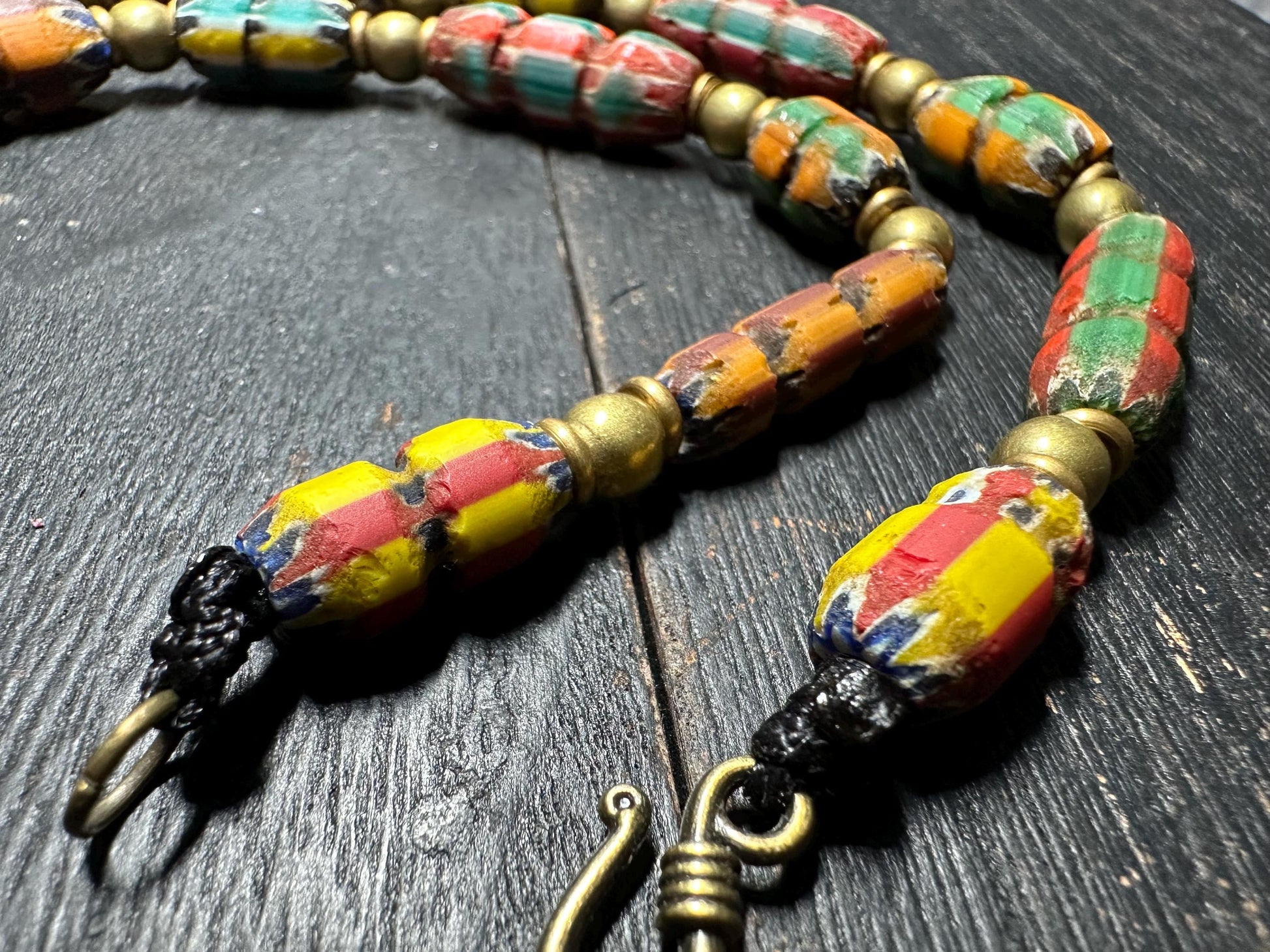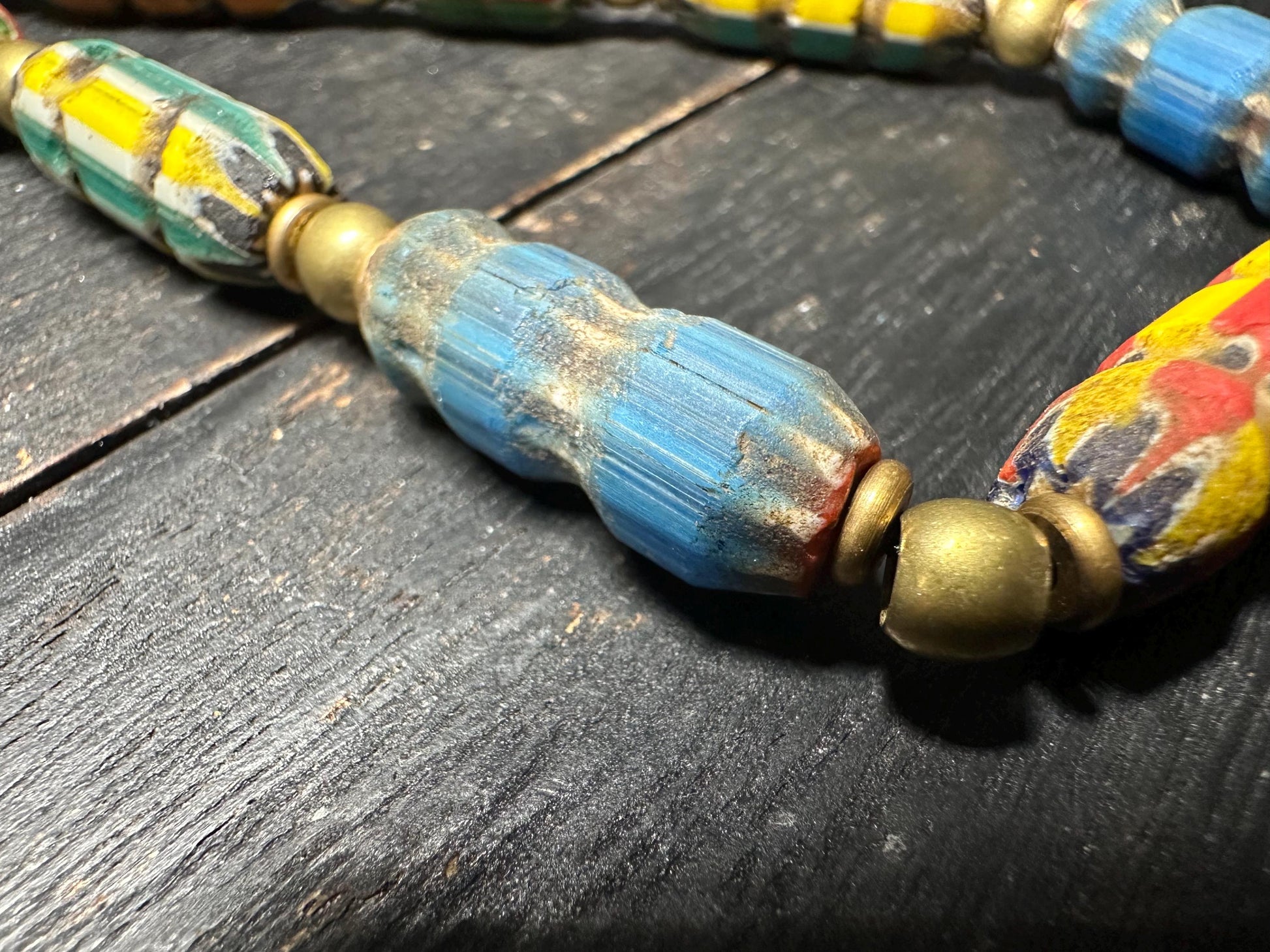 Ancient Mosaic Glass Bead Necklace: Rare Colorful Big Beads