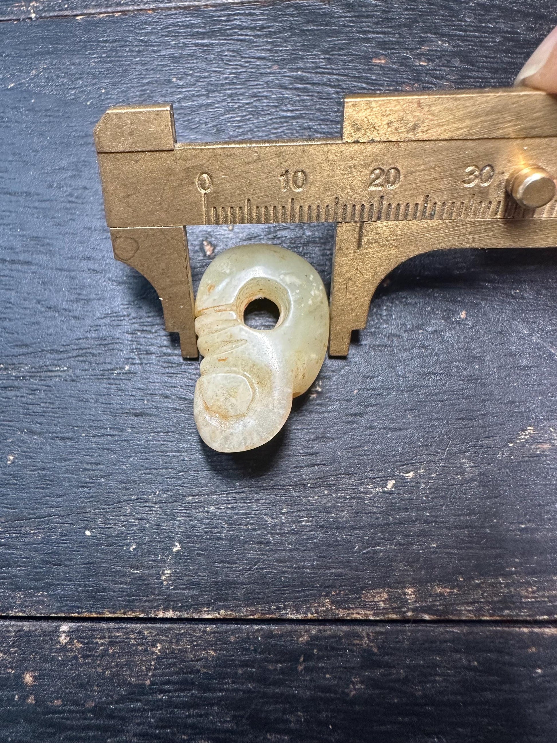 This hand-carved jade pendant is crafted in the distinctive form of a Pig Dragon (Zhū Lóng) — a symbol of spiritual power, transformation, and protection. The design is inspired by jade artifacts from the Neolithic Hongshan Culture (c. 4700–2900 BCE), known for their abstract animal carvings and ritualistic art.