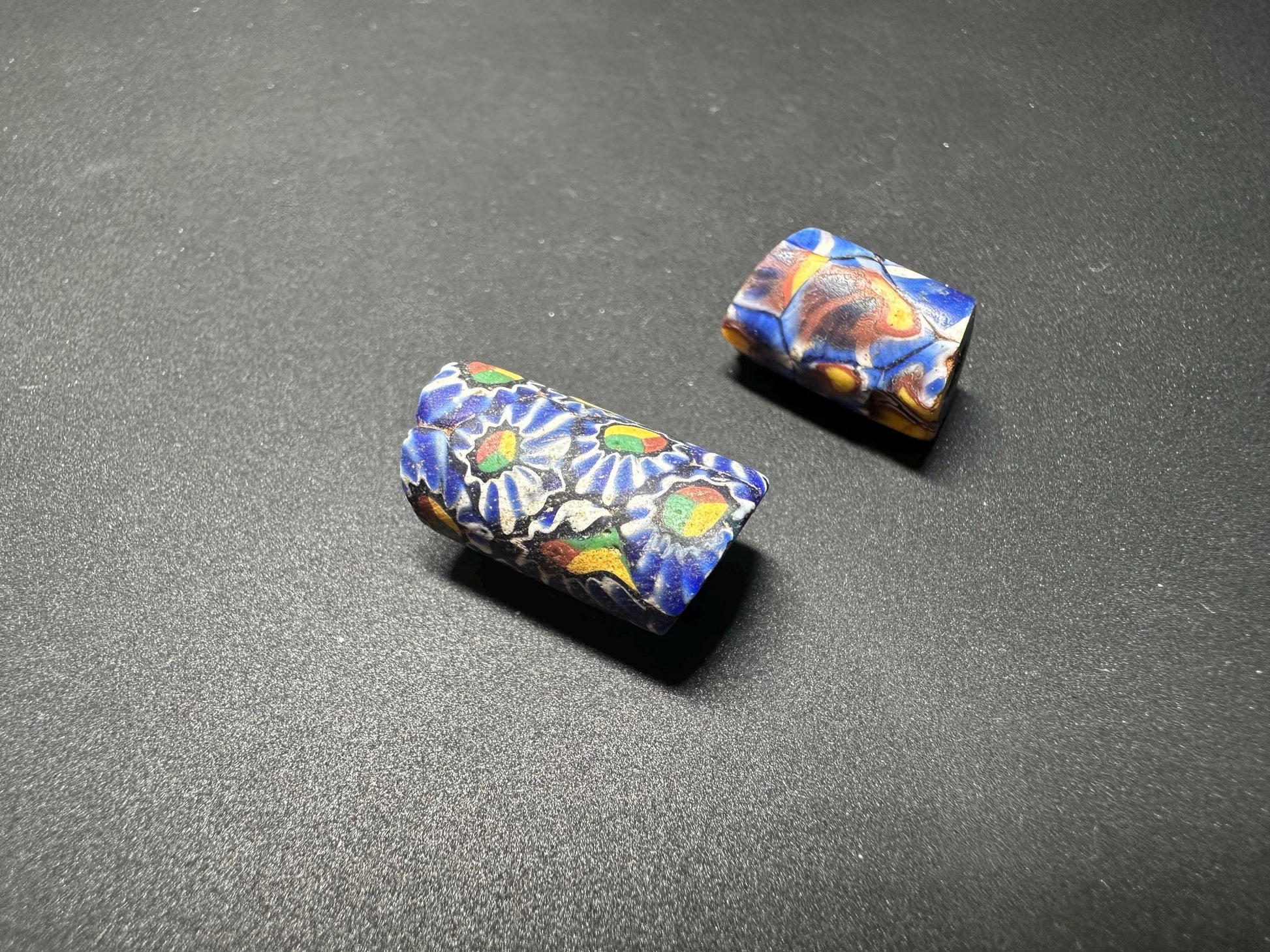 Add a touch of global history to your jewelry with these stunning Antique Millefiori Glass Beads, handcrafted in Venice and once traded across Africa in the 19th to early 20th centuries. Each bead is a unique work of art, featuring vibrant mosaic patterns in rich reds, blues, yellows, and earthy tones — a true testament to the Millefiori (“thousand flowers”) glassmaking technique.