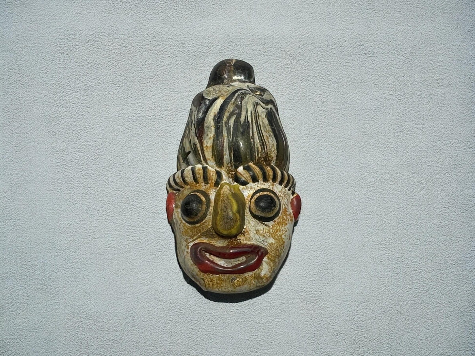 This unique pendant can serve as a remarkable collectible or a statement piece in jewelry design. Its detailed facial features and bold colors make it a testament to the artistry of ancient civilizations.