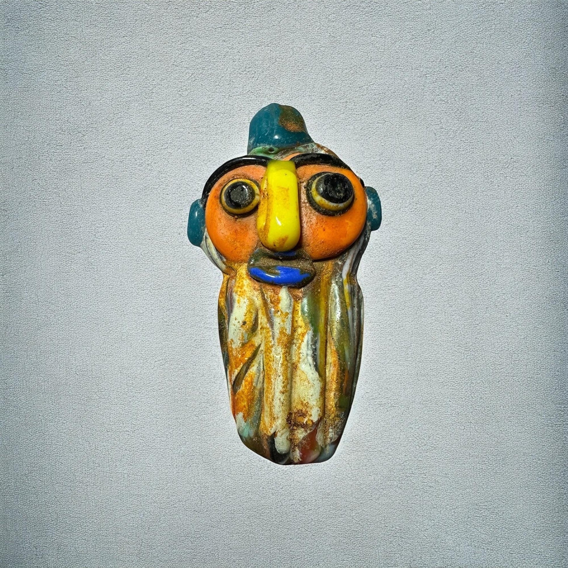 Antique Phoenician Mosaic Glass Face Pendant: Ancient Amulet (38mmx70mm)