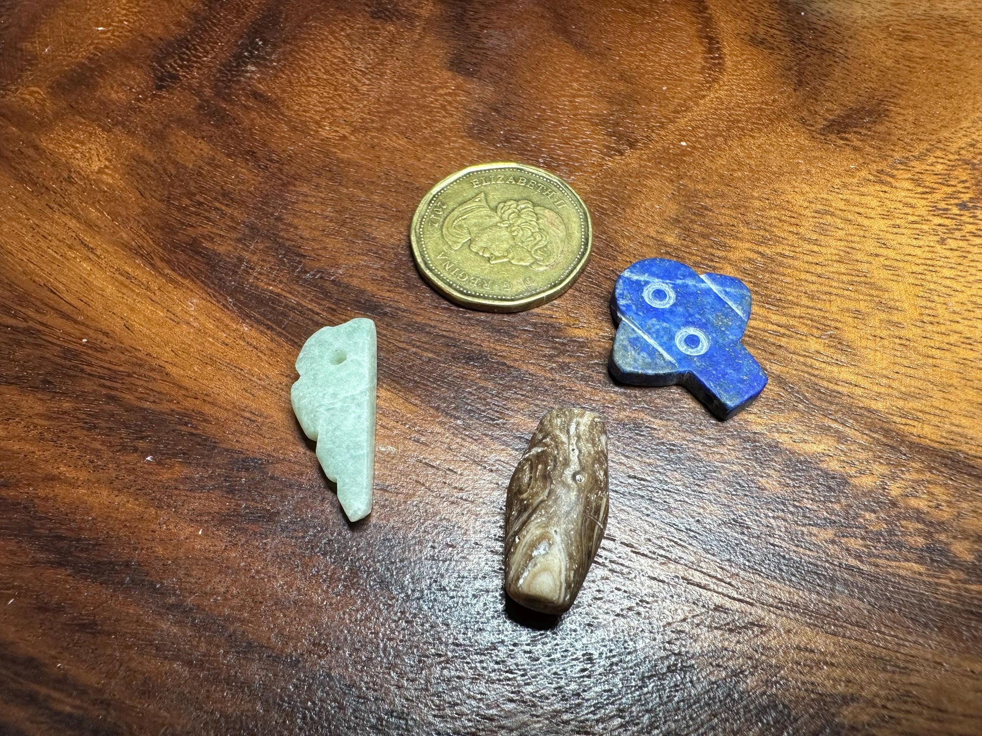 Carved Gemstone Amulets: Jade, Agate, Lapis Lazuli Tribal Beads (Lot of 15)