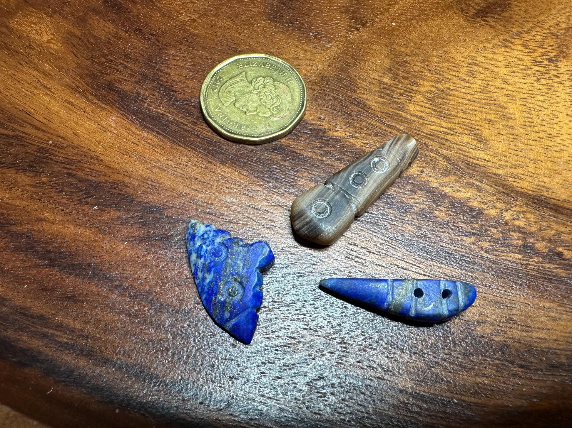 • Materials: Jade, Agate, Lapis Lazuli, possible serpentine and other mixed stones