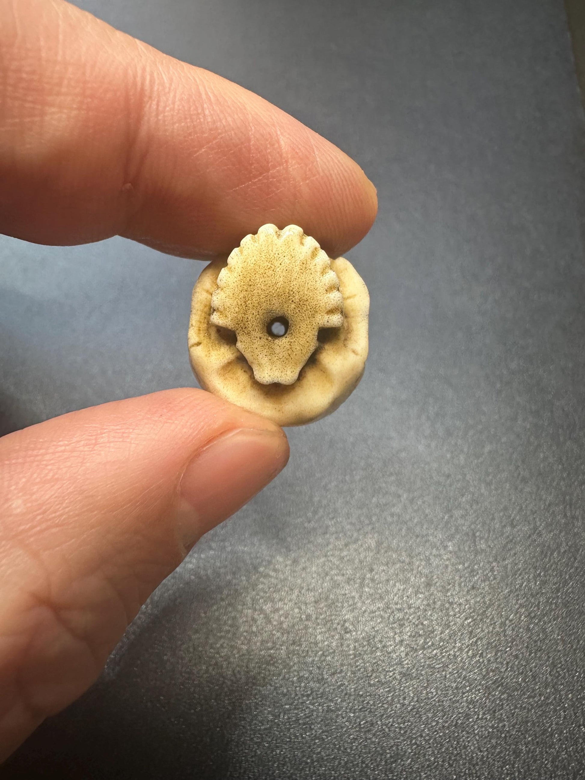 Hand-Carved Antler Citipati Skull Guru Bead with Grasping Hand Tibetan Charnel Ground Amulet