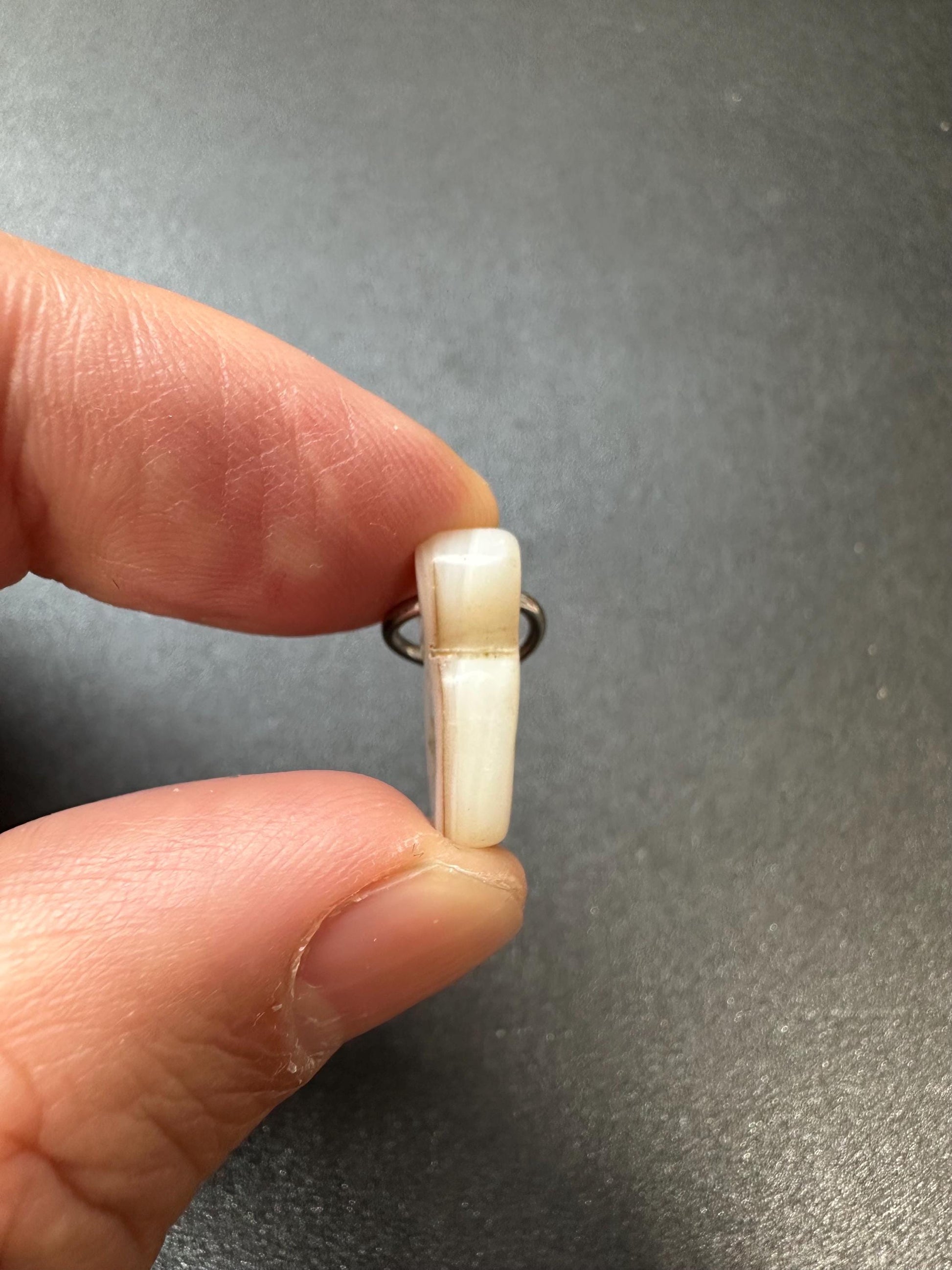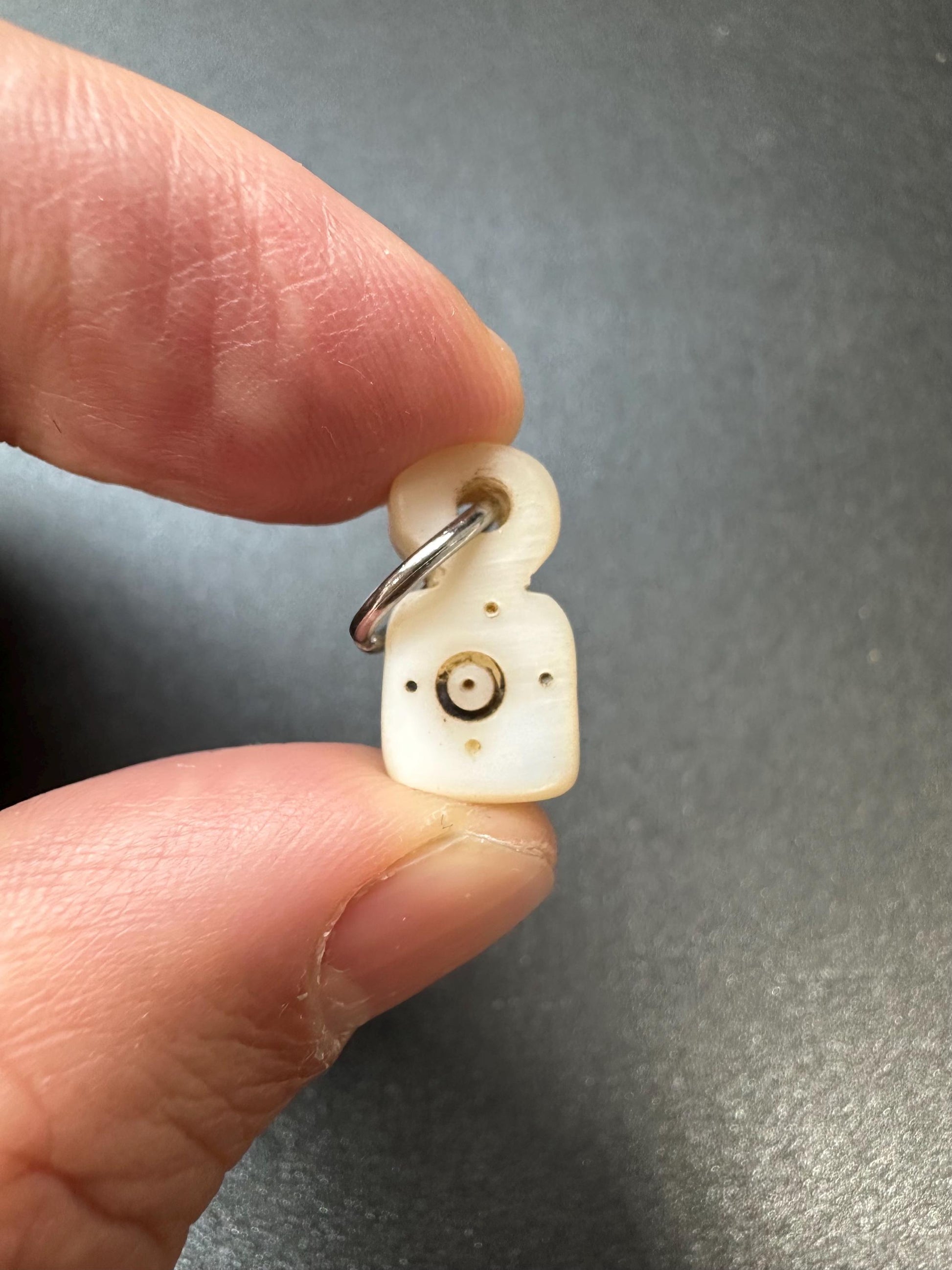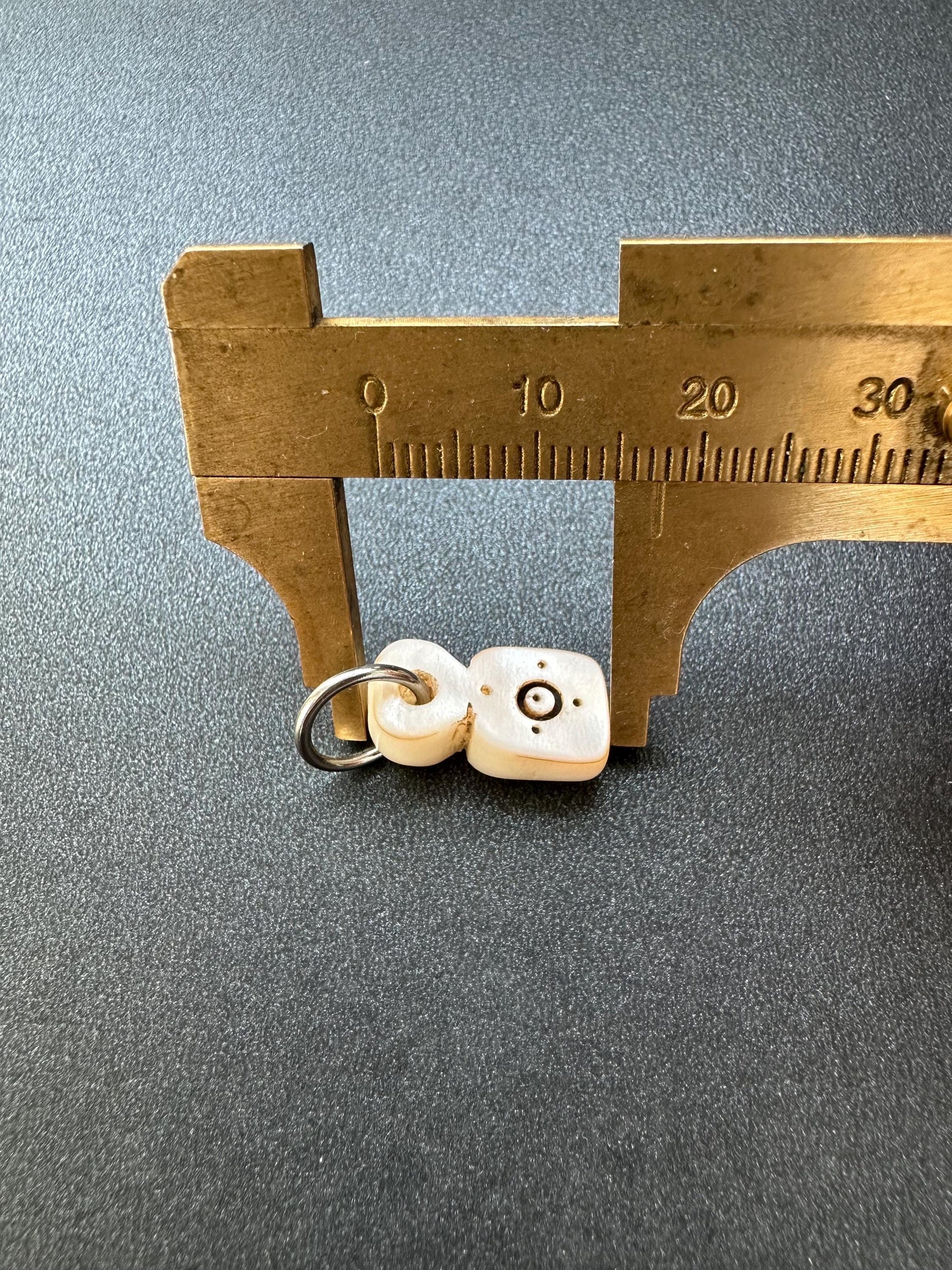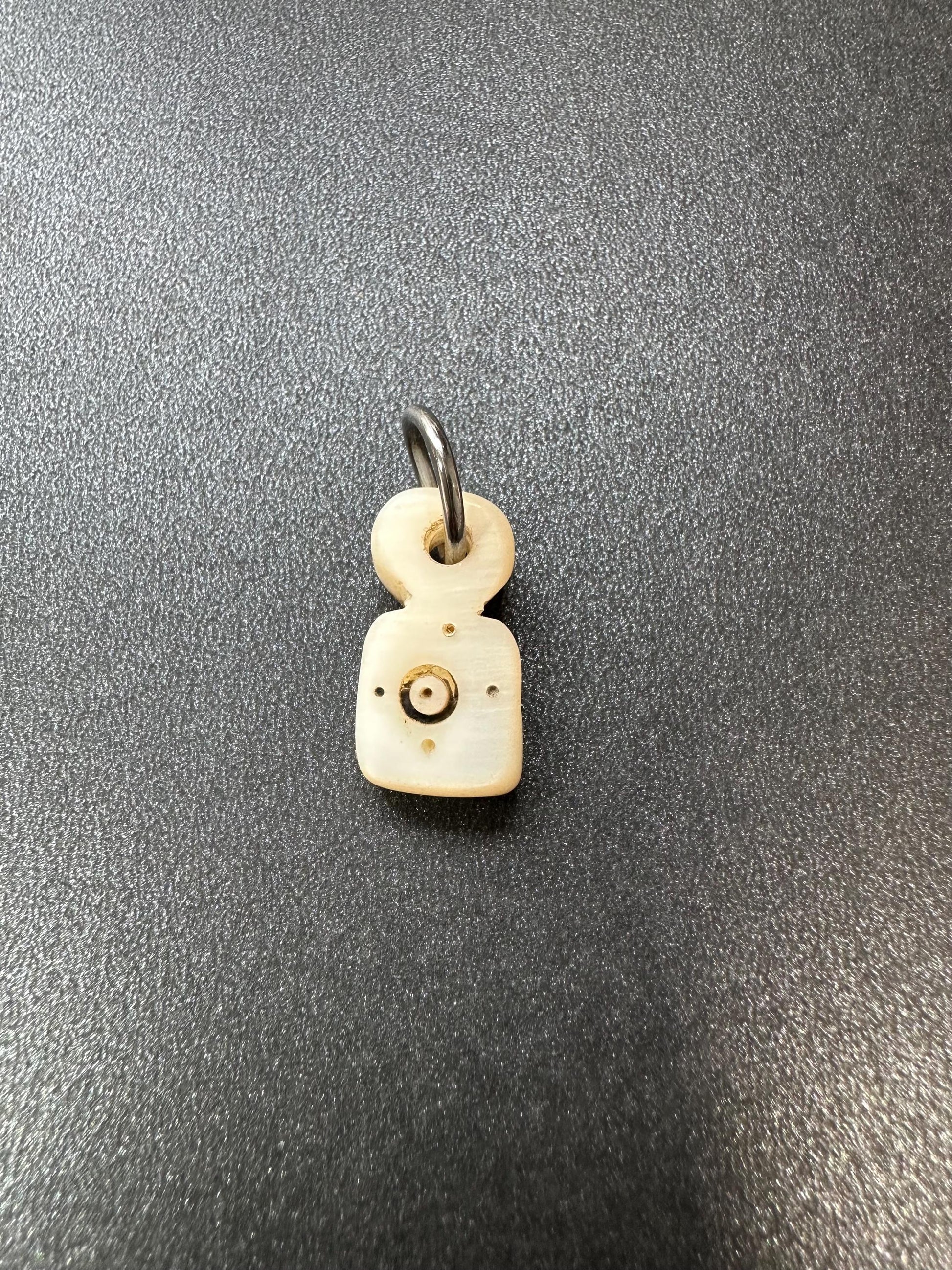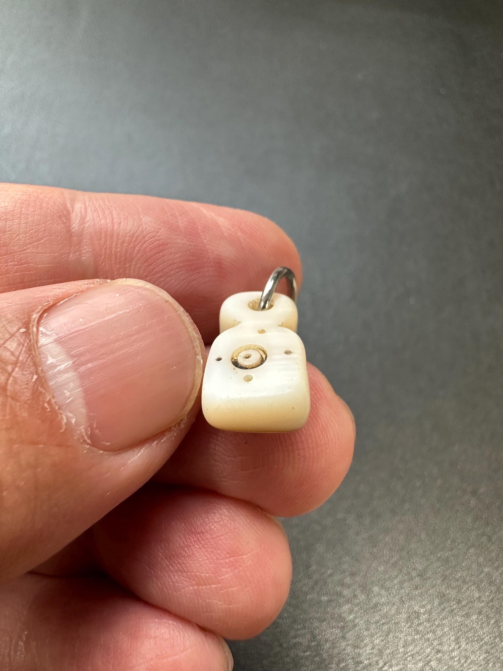 Handcarved Tibetan Shell Pendant Double Mantra Dot Talisman, Both Sides, Spiritual Amulet Mala Counter