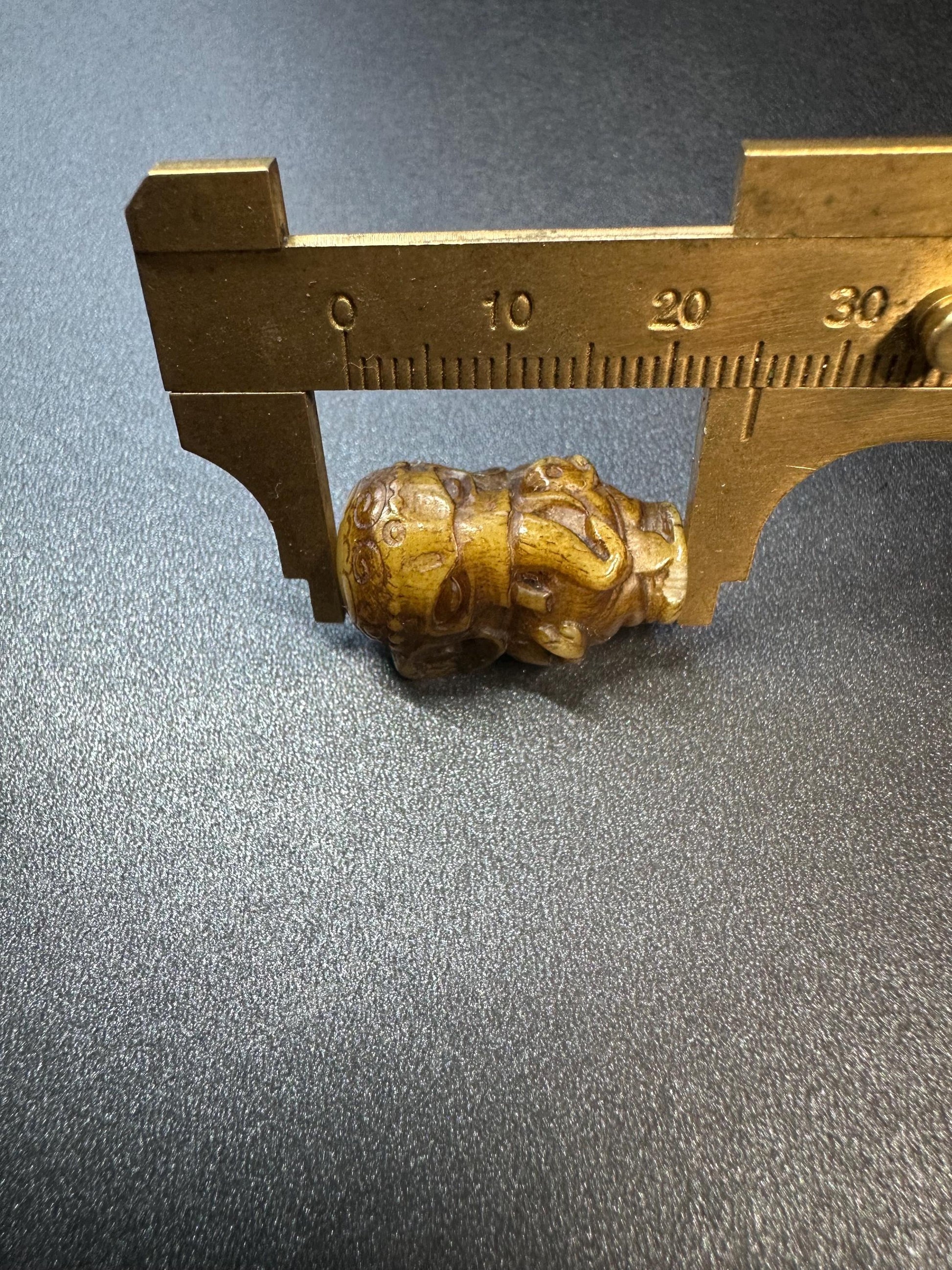 HandCarved Yak Bone Ganesha Guru Bead | Small Tibetan Elephant God Mala Center | 3Hole Buddhist Prayer Focal Bead