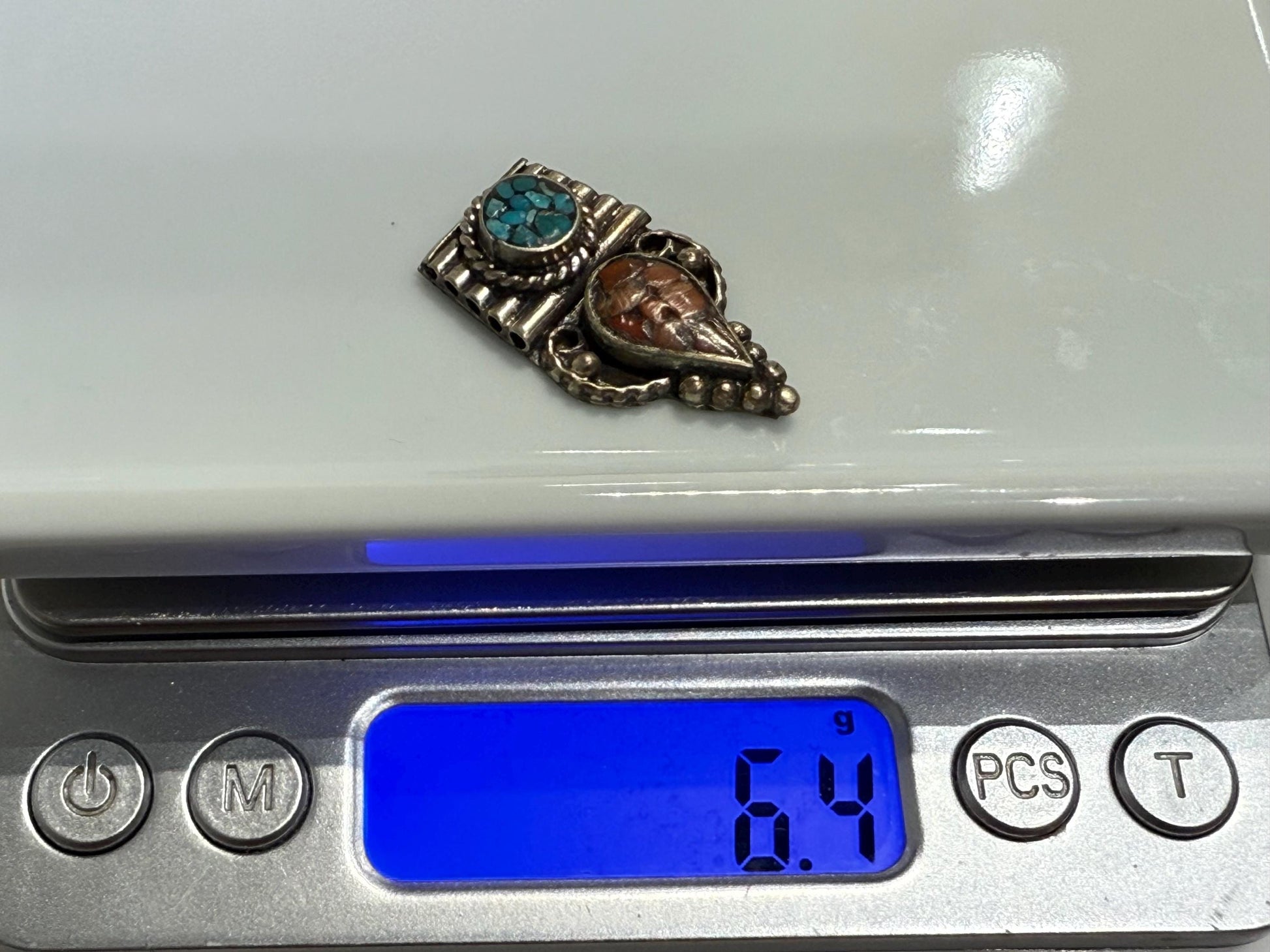 Add a unique touch of Himalayan craftsmanship to your jewelry designs with this stunning white metal pendant. Featuring vibrant inlays of turquoise and coral, this piece reflects traditional Nepali and Tibetan artistry. The intricate metal detailing and rustic finish make it perfect for tribal, bohemian, or spiritual-themed jewelry projects.
