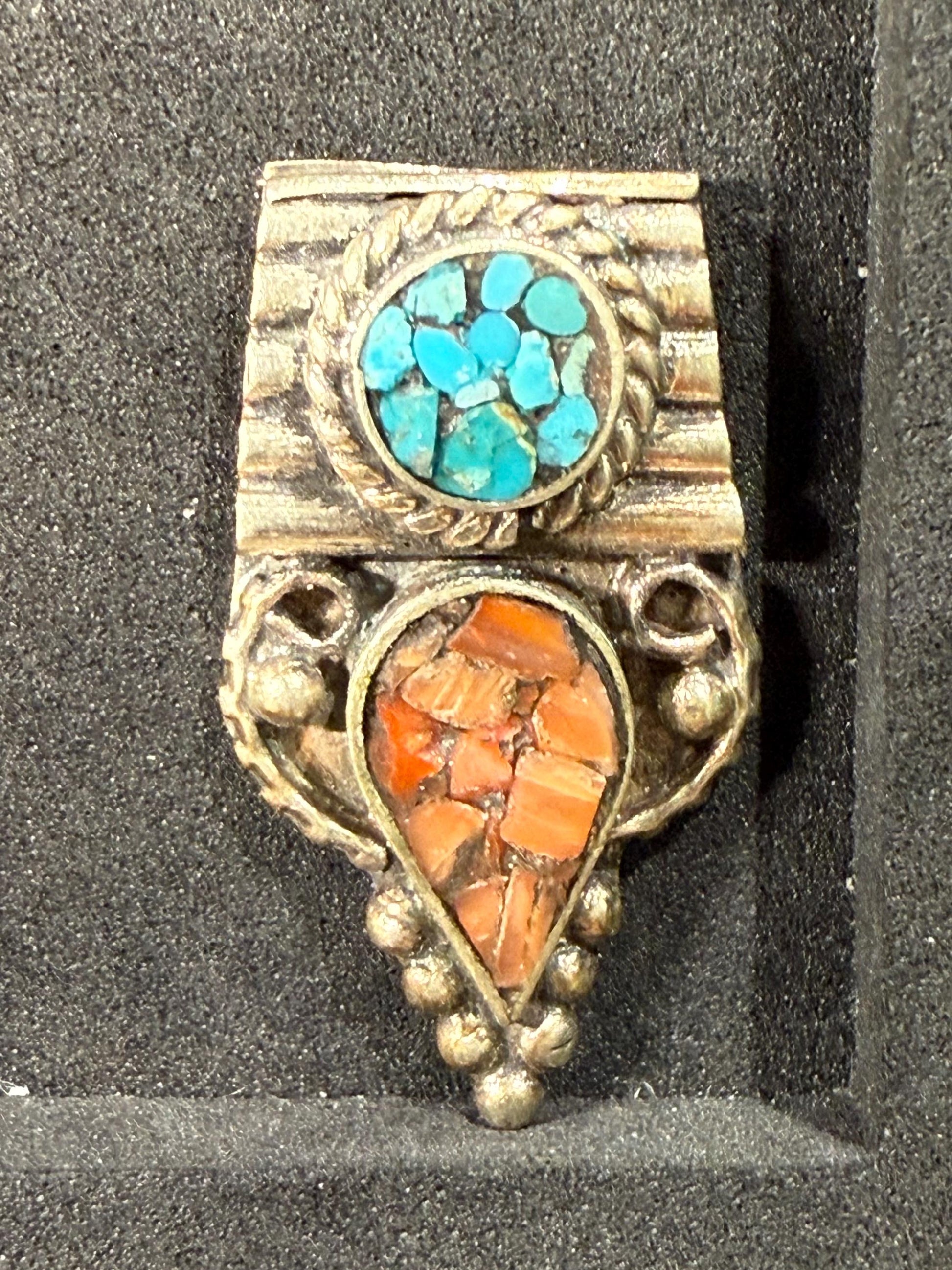 Handcrafted Turquoise and Coral Pendant | Tribal Bohemian Jewelry Component
