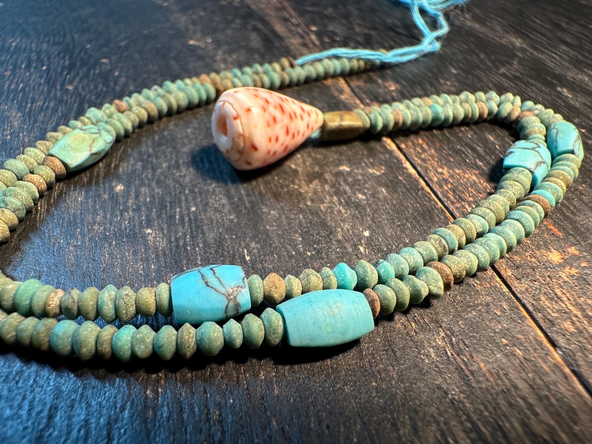 Handmade Afghan Turquoise Glass Bead Necklace: Boho Layering Jewelry