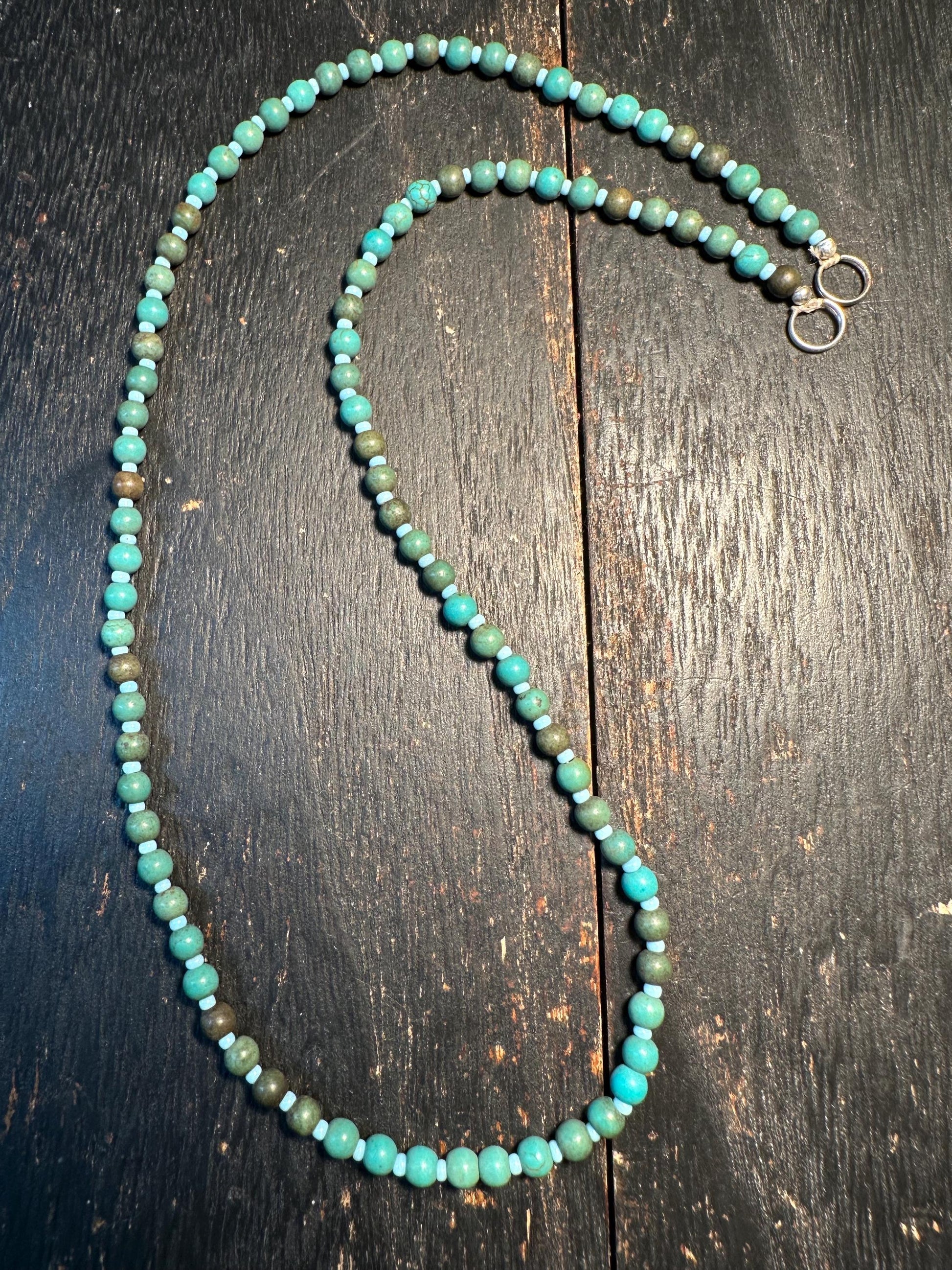 Handmade Afghan Turquoise Glass Bead Necklace: Boho Layering Jewelry