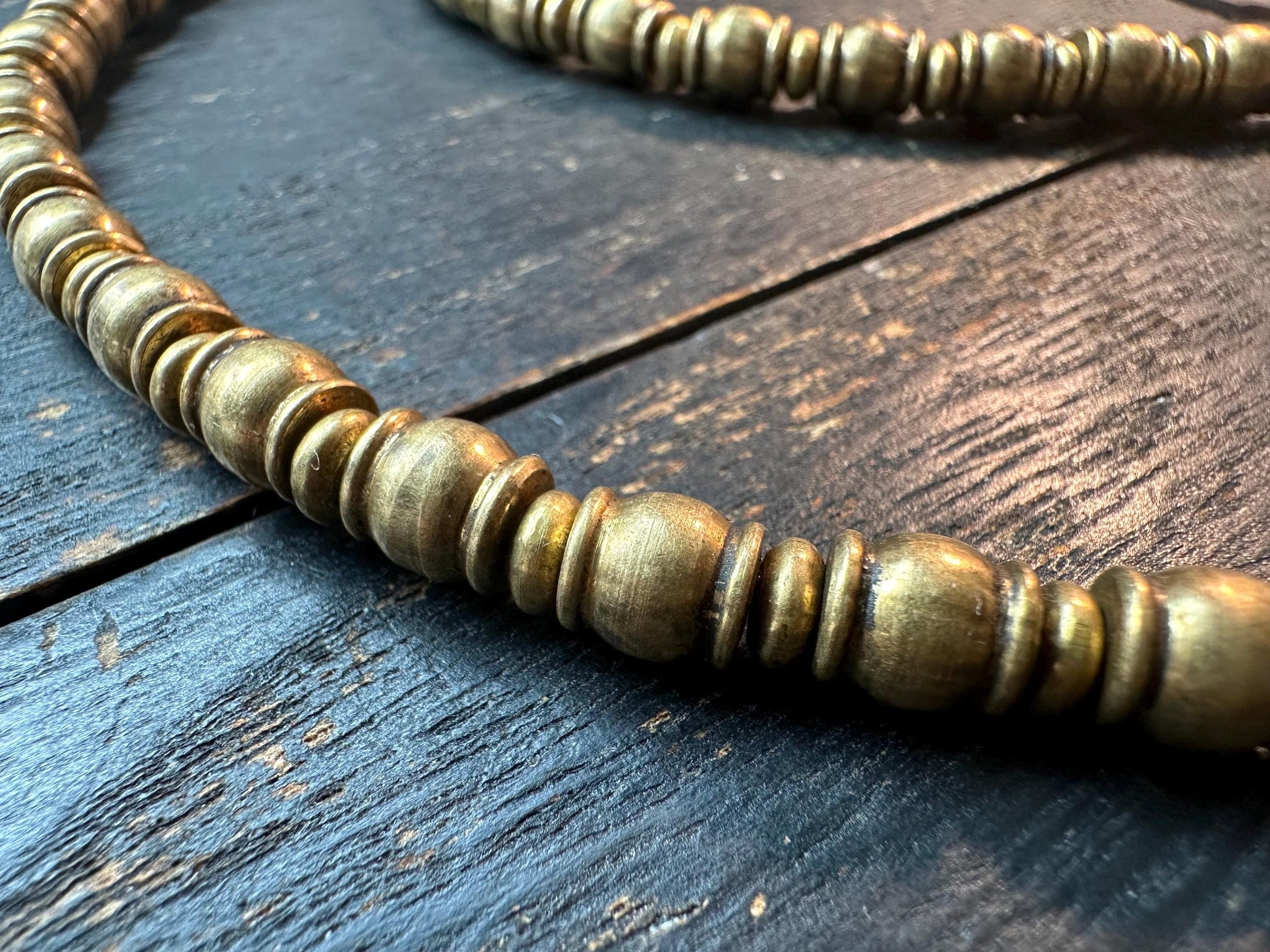 Handmade Nepal Copper Spacer Beads Strand | 7x7mm Tribal Ethnic Brass Necklace | 21-Inches Jewelry Supply | Vintage Bronze Spacer
