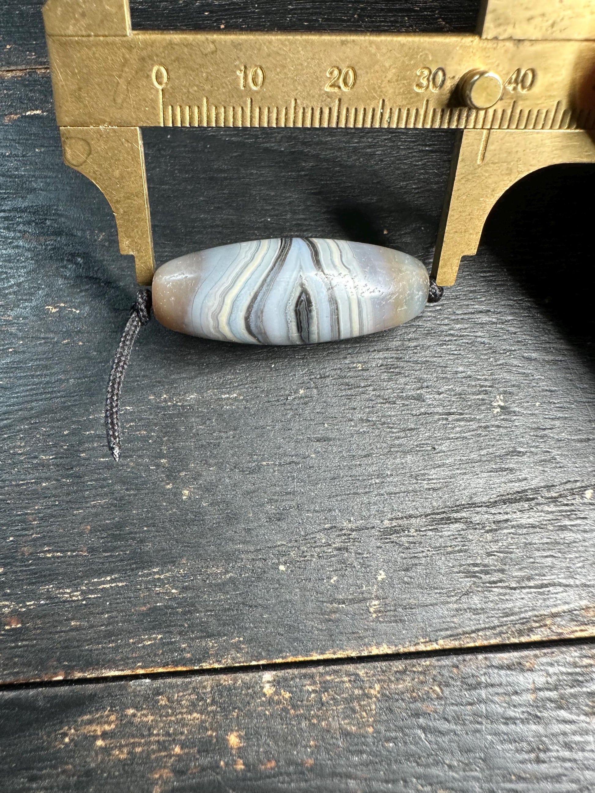 This is a handmade original Tibetan Chung Dzi agate bead, crafted from utmost pure Himalayan agate stone. Its striking natural banded patterns evoke the traditional power and beauty of ancient Dzi beads, cherished for their spiritual and protective qualities.