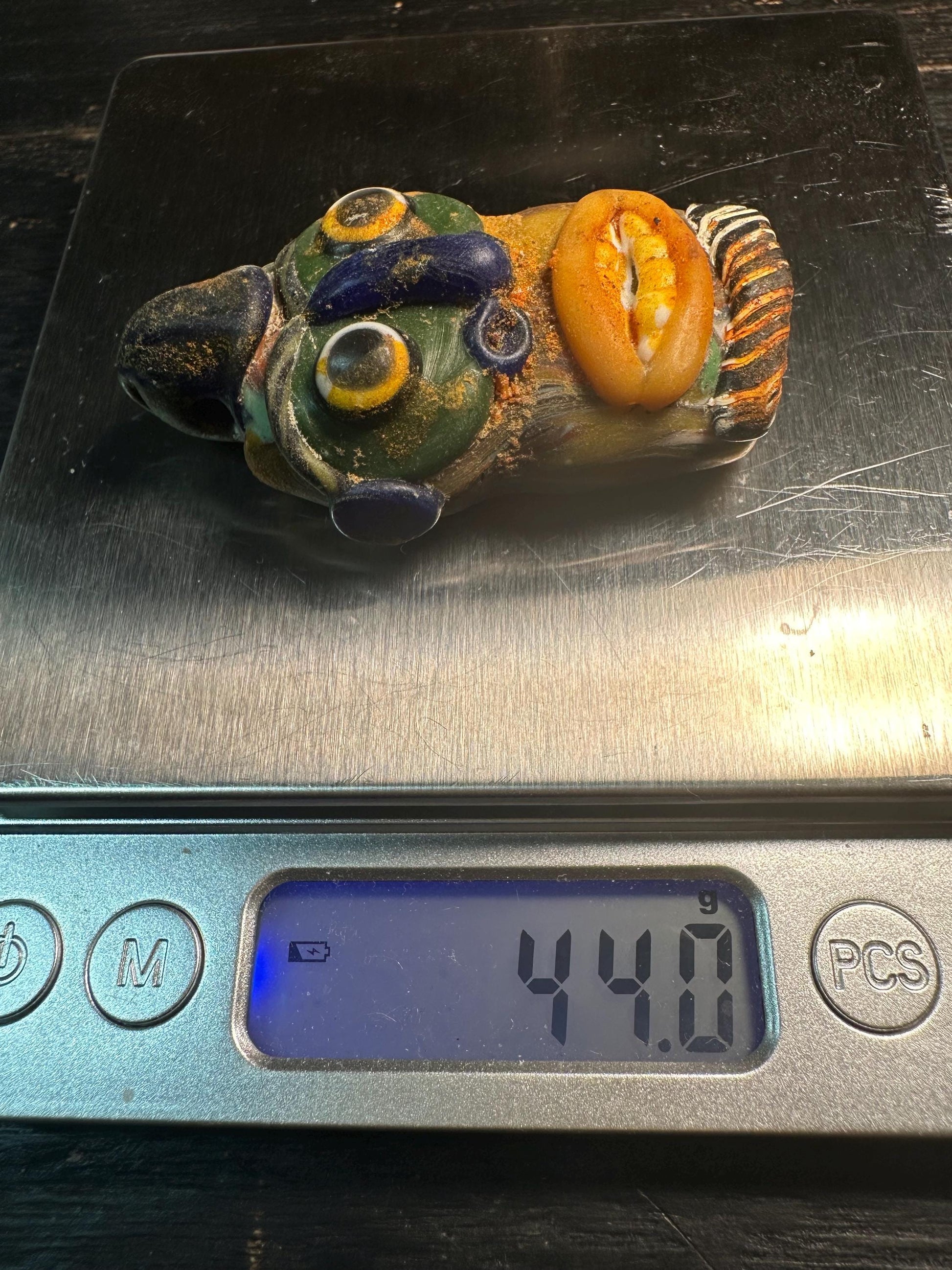 Handmade PhoenicianInspired Tribal Face Pendant Mosaic Glass Bead, Collectors Amulet(P2108)