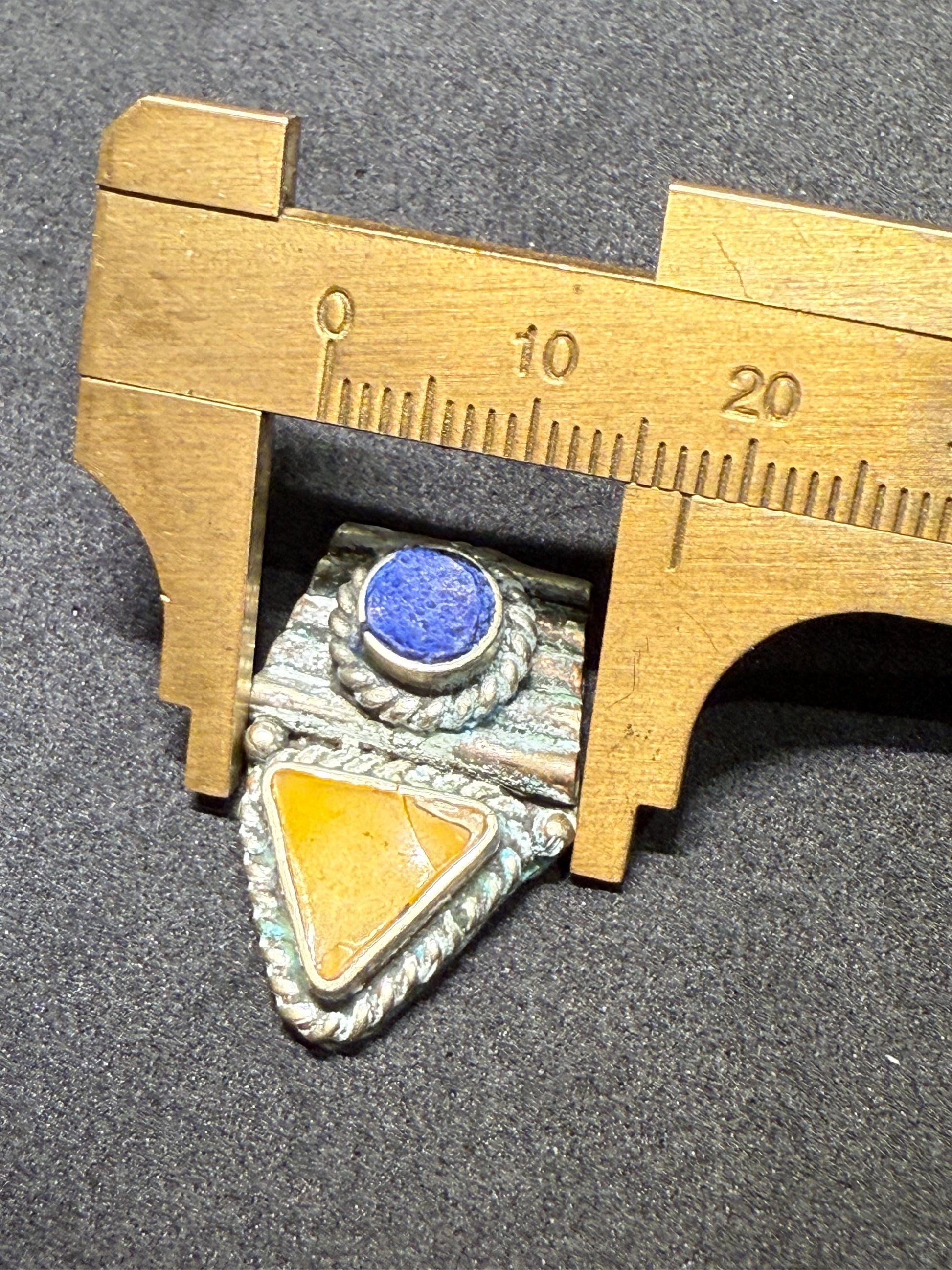 Handmade Tribal Pendant with Lapis Lazuli and Amber Inlay | Boho Ethnic Necklace Component