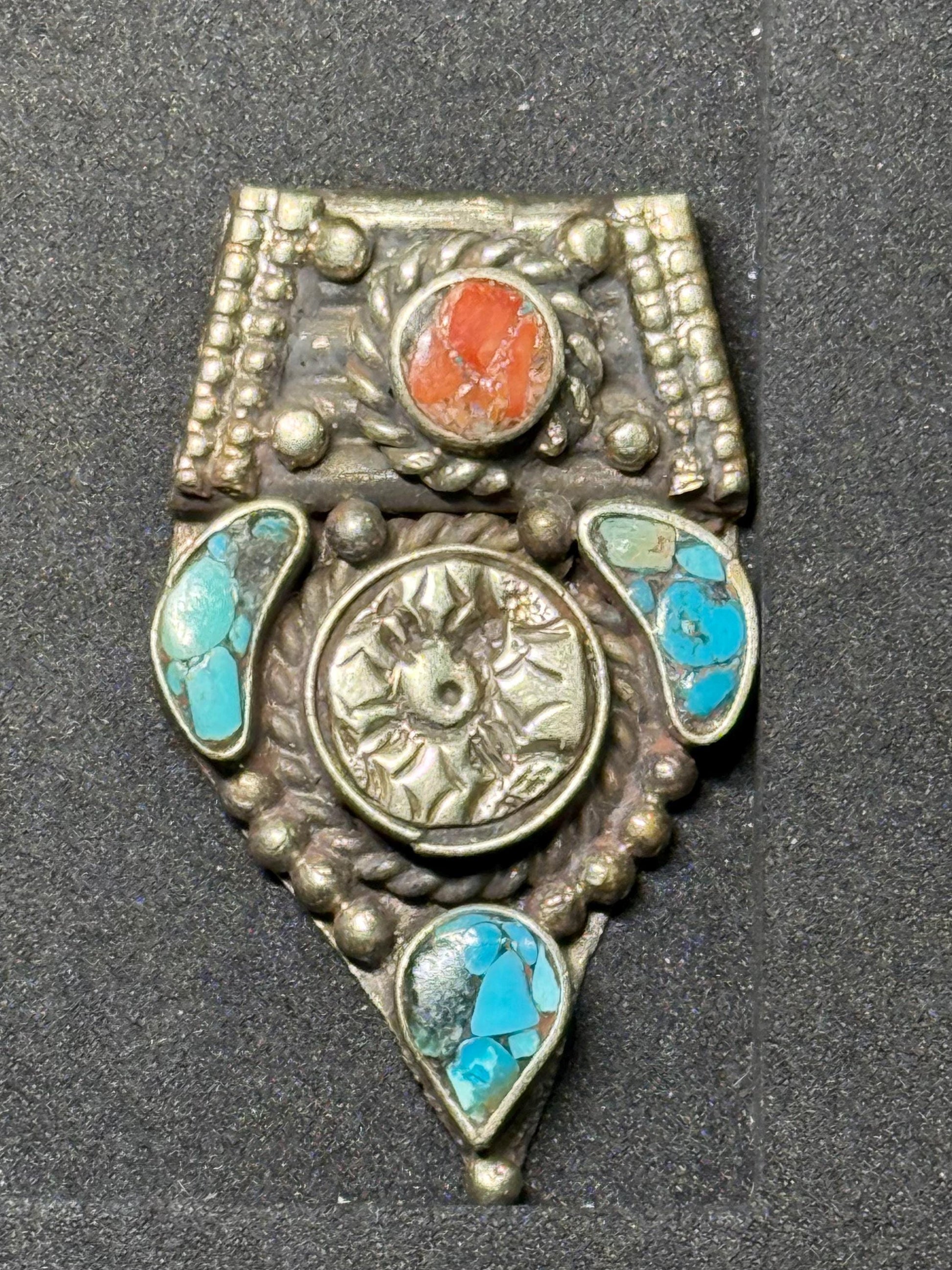 Himalayan Pendant with Coral and Turquoise Inlay | Rustic Bohemian Jewelry Supply
