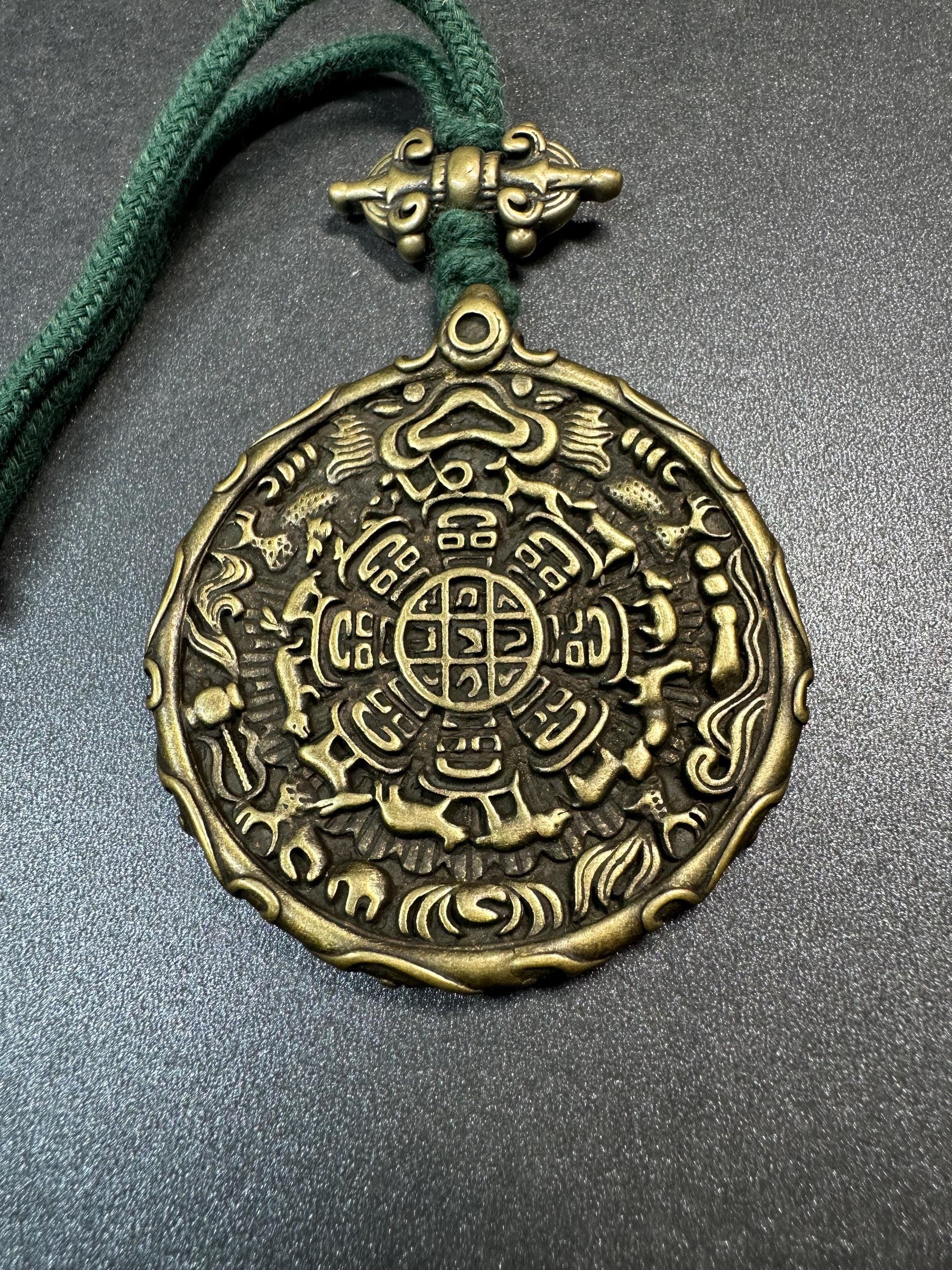 Large Brass Nine Palace Bagua Amulet | Garuda Feng Shui Pendant | Tibetan Zodiac Protection Talisman