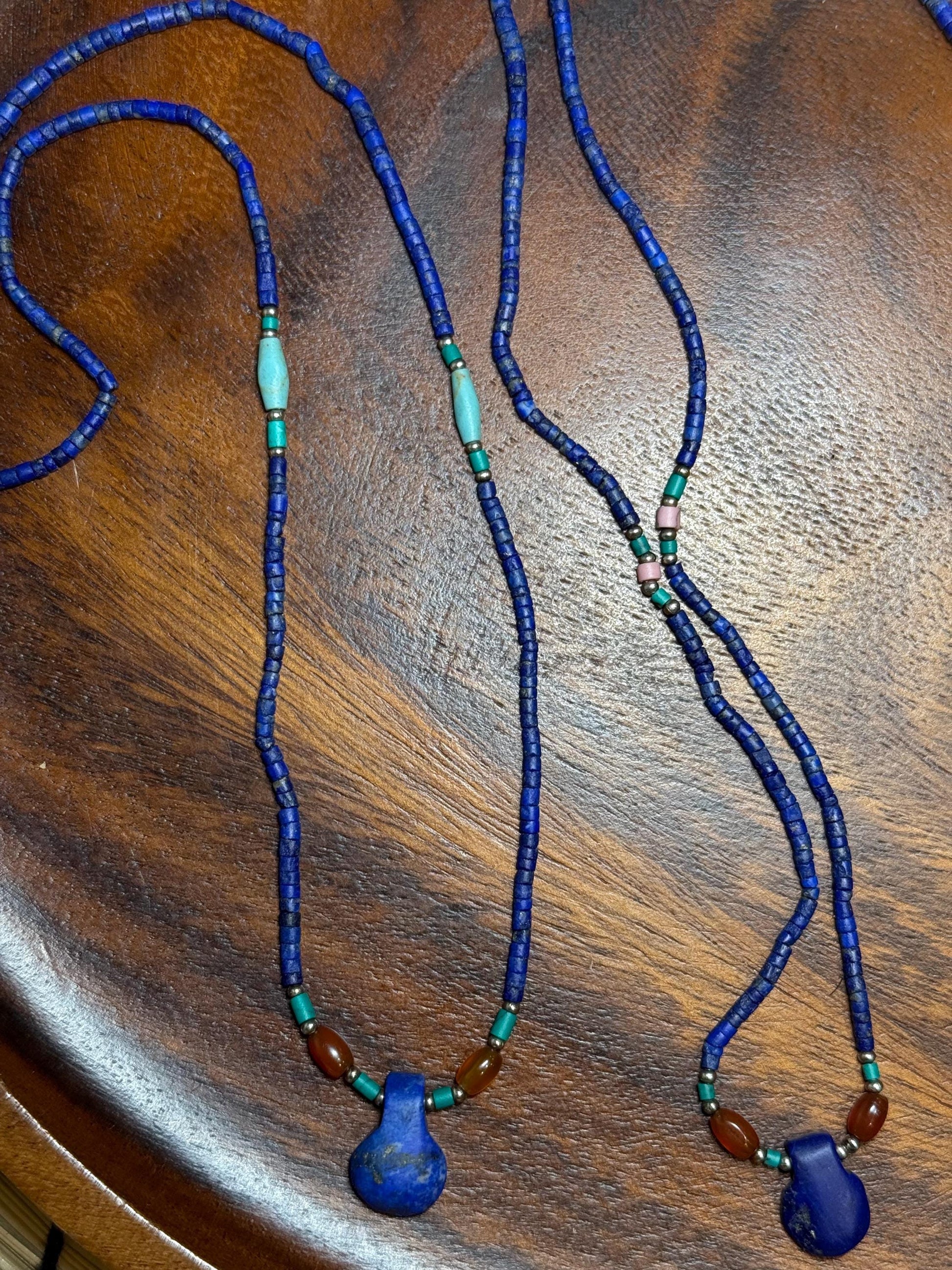 Lot 4 Handmade Lapis Lazuli Pendant Necklace - Bohemian Blue Beaded Design with Afghan Lapis