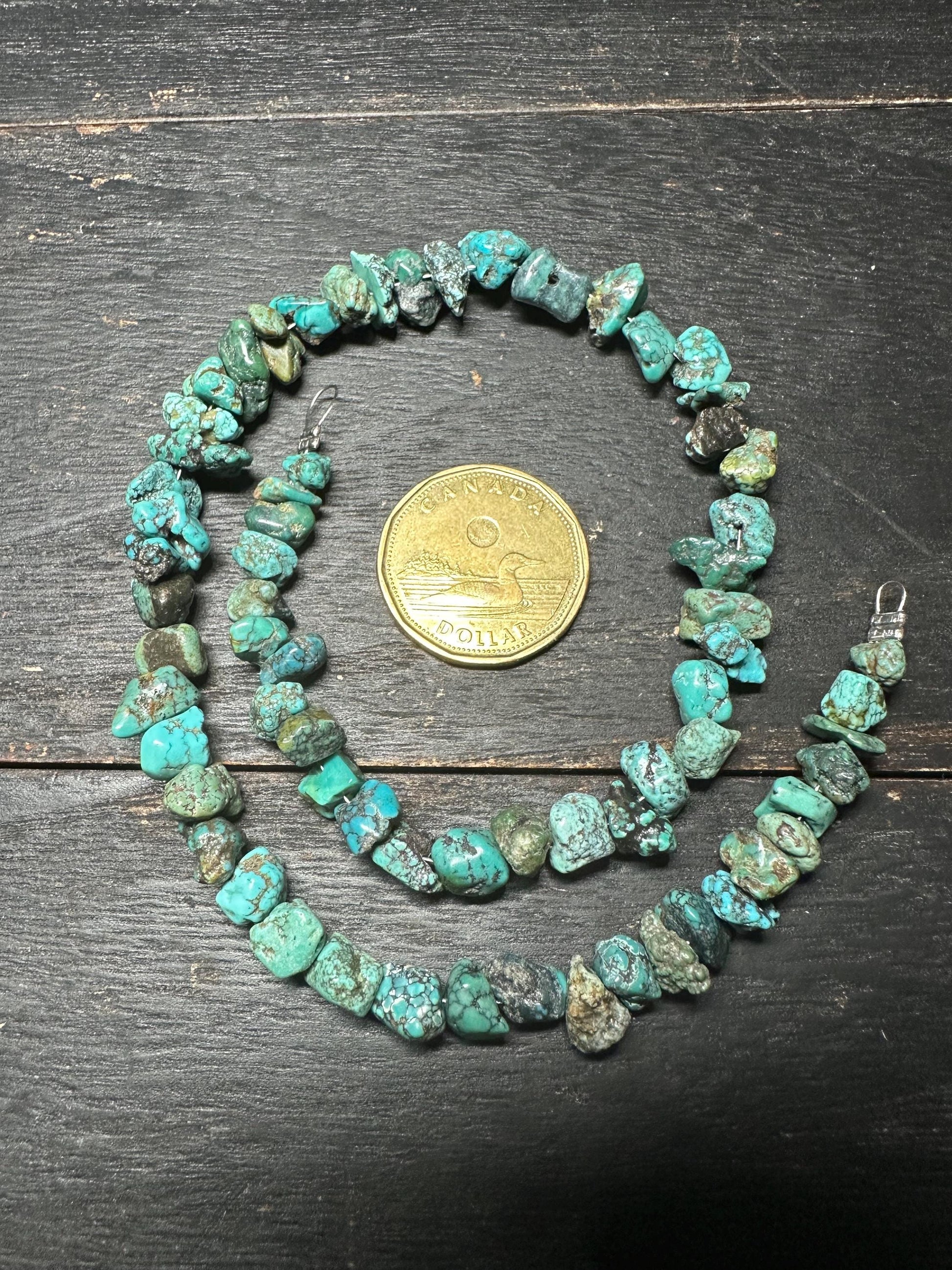 These genuine turquoise nugget beads are high-quality natural turquoise. Featuring a stunning mix of blue-green hues with intricate matrix patterns, these beads are hand-polished while maintaining their organic, raw shape.