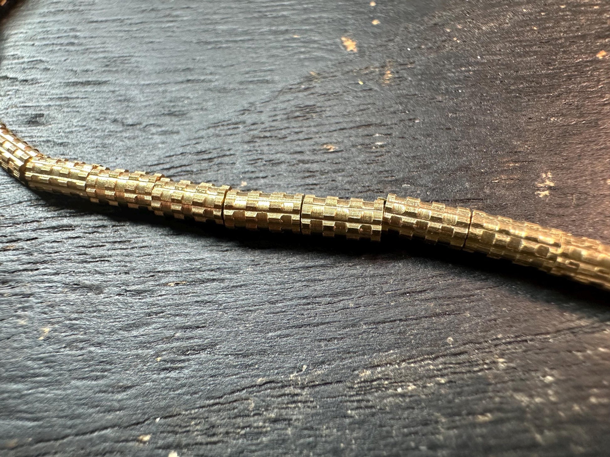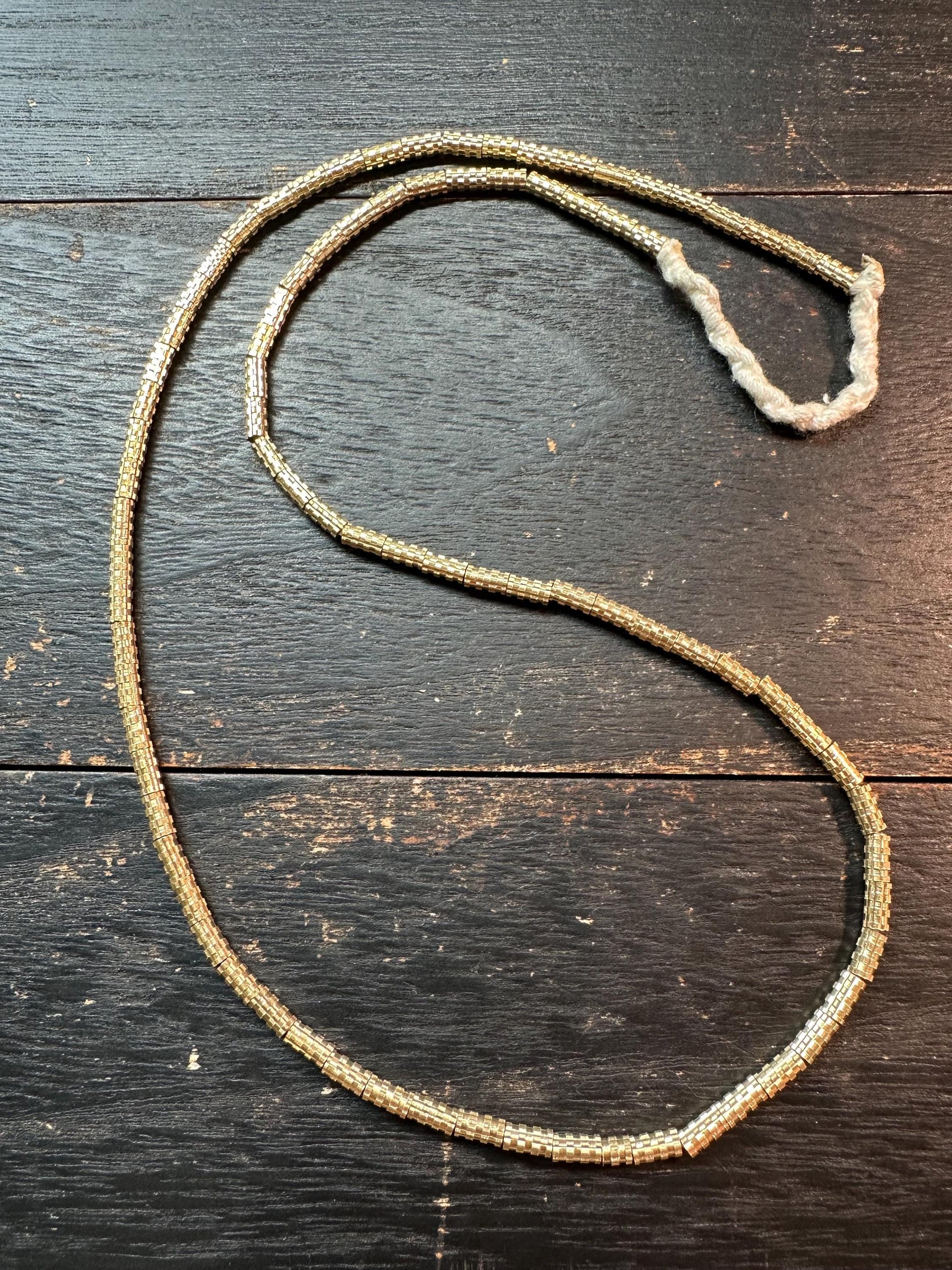 This listing features a strand of Nepalese handmade copper heishi beads, each faceted for unique shine and texture. The strand measures approximately 22–23 inches, with each bead sized around 3.5x6.5mm. These beads are perfect as spacers or for making detailed, ethnic-inspired jewelry and crafts. Each strand displays authentic artisan work from Nepal, with a detailed faceted profile for extra sparkle. Perfect for creating boho-chic necklaces, bracelets, or for ethnic jewelry supply collections.