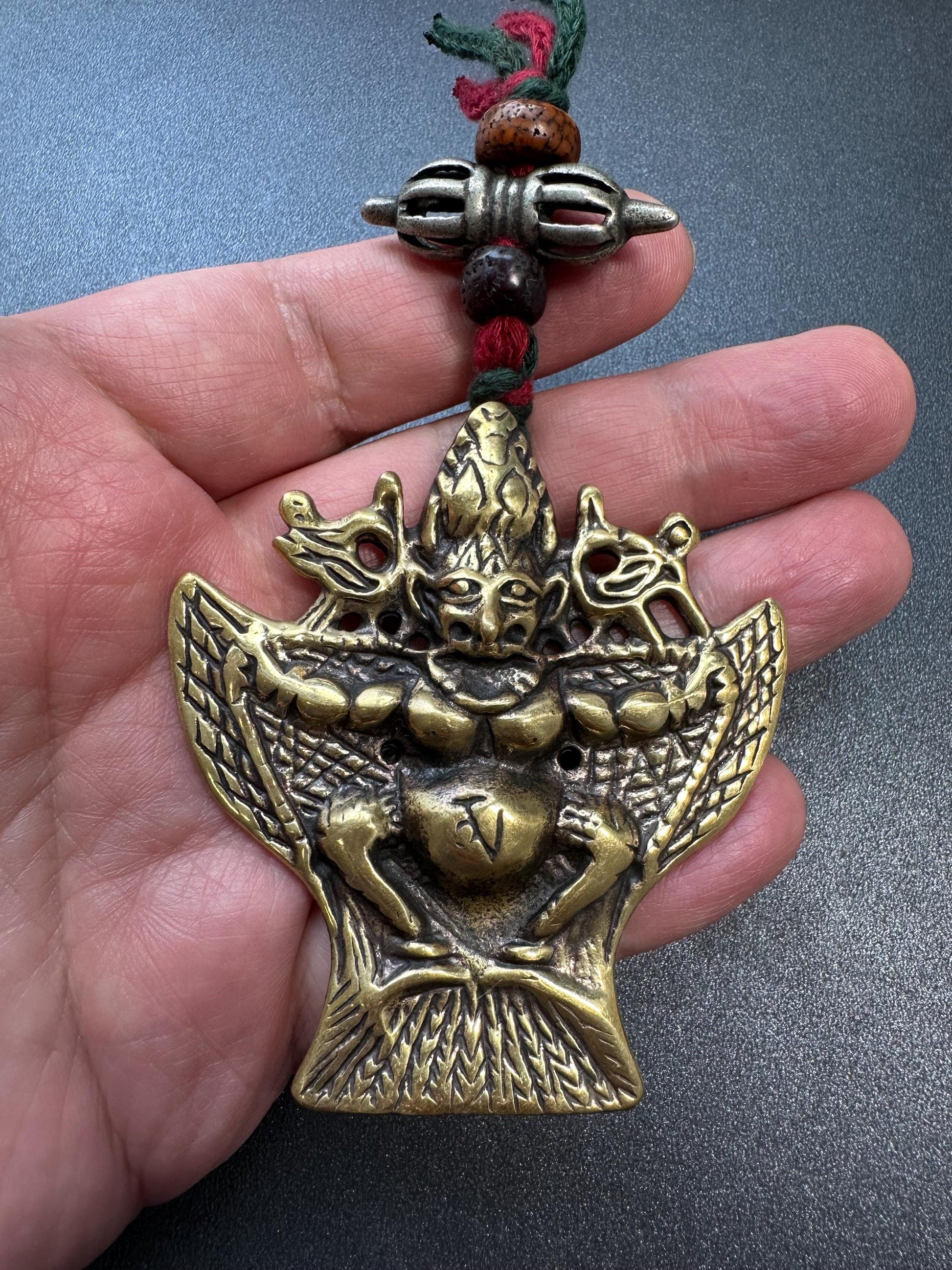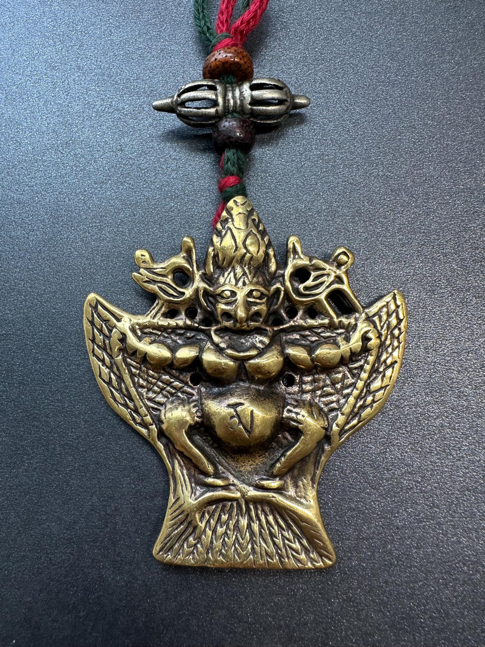 Nepal Tibet Buddhist Brass Garuda Suparna Talisman Pendant, Handmade Protection Amulet, Himalayan Sacred Jewelry