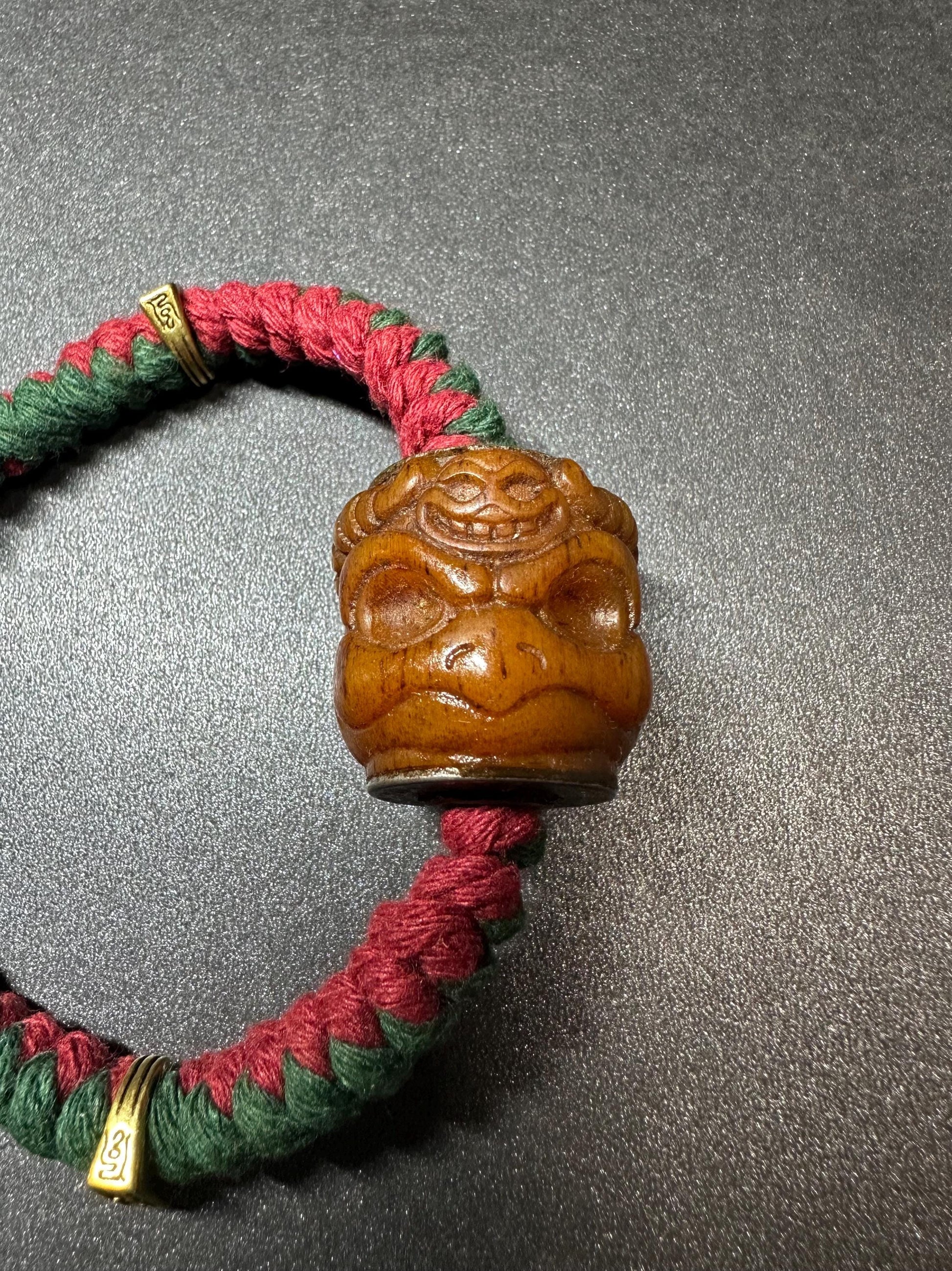 • Design: Rounded guardian face bead (Garuda/Citipati style) sits as the central focal point, with strong braided band and sliding‑knot style back so the bracelet can be adjusted to fit most wrists.