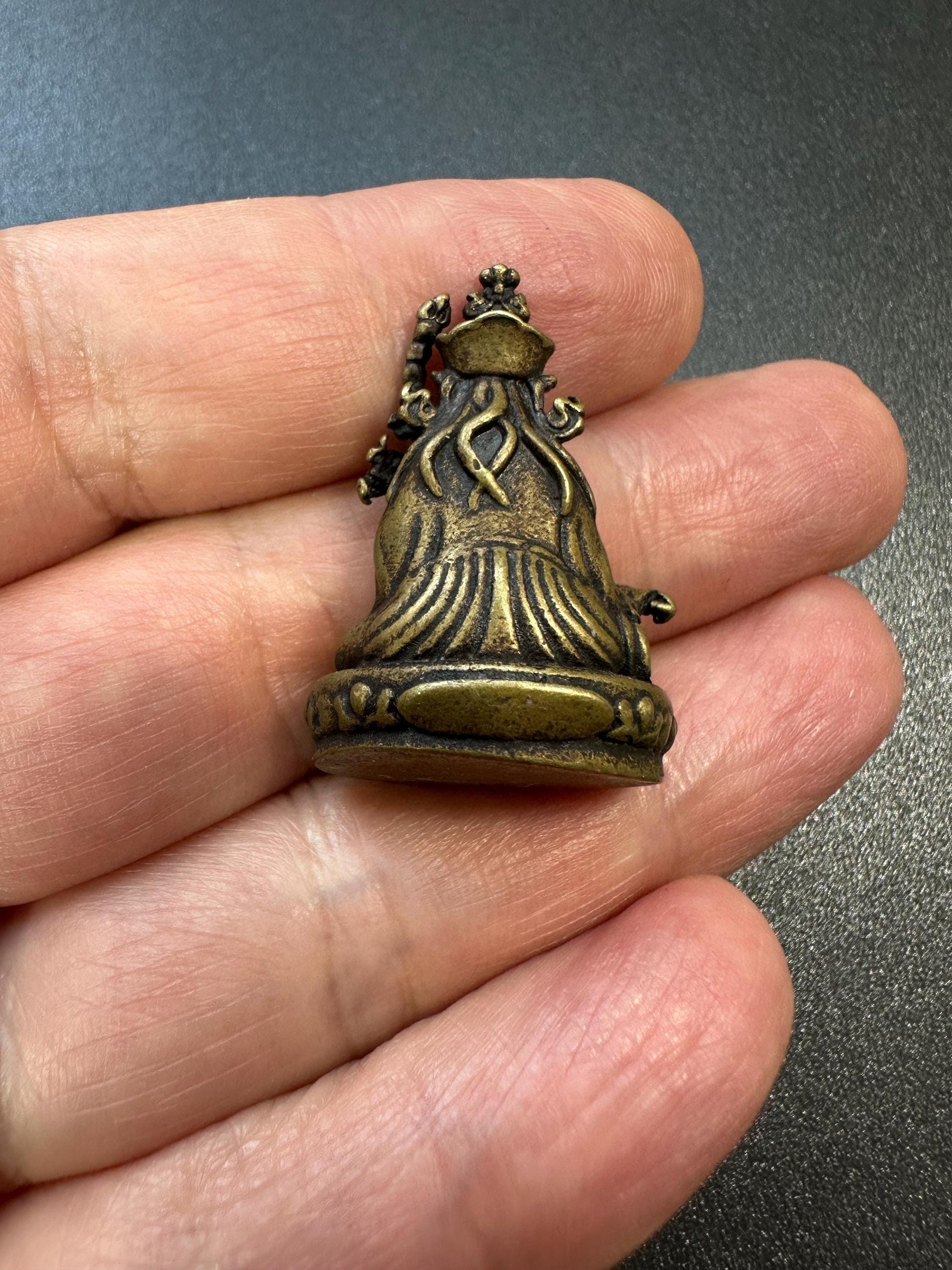 Enhance your meditation space, carry blessings with you, or delight a collector of Buddhist art with this pocket-size Guru Rinpoche statue. Please see all photos for condition and details.