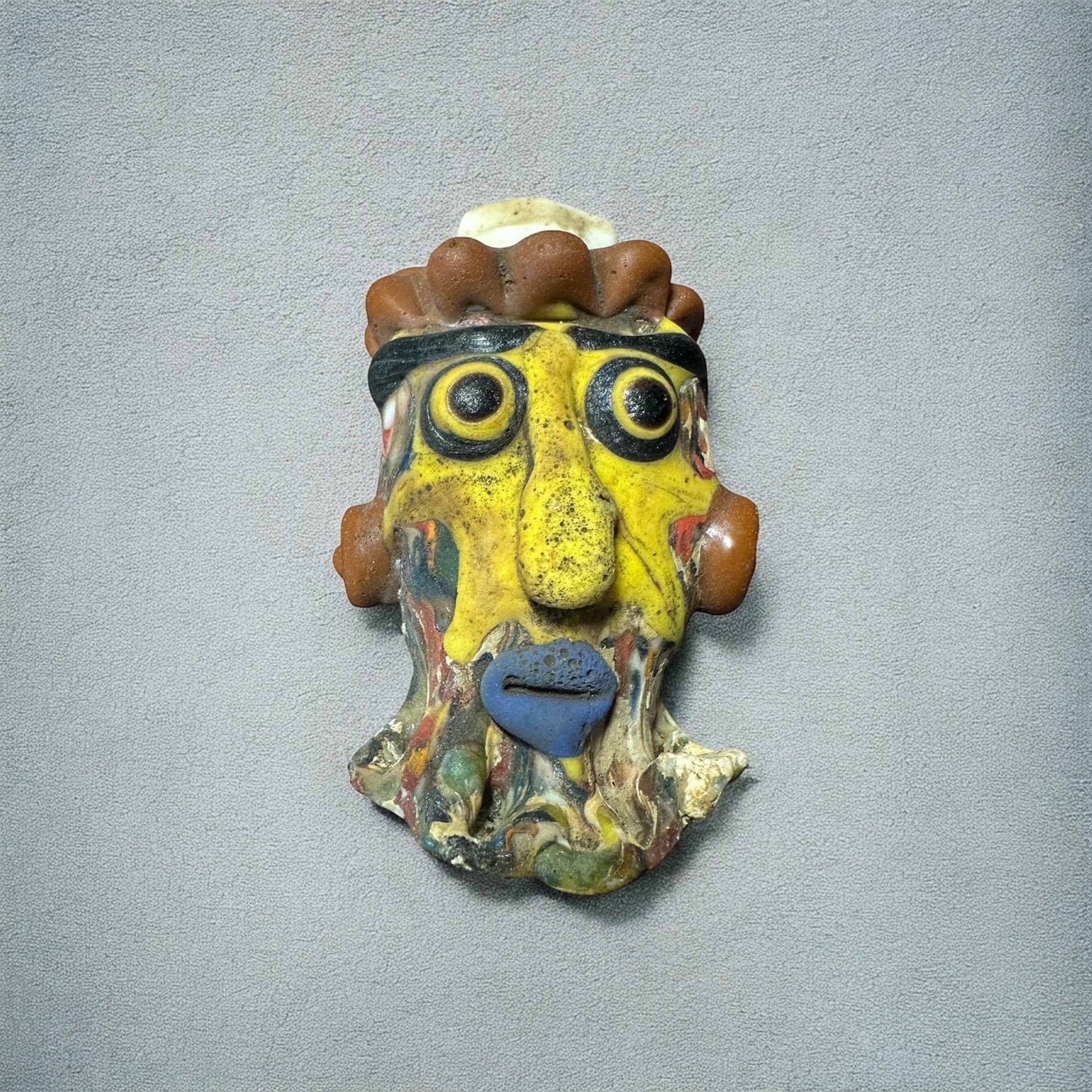This unique pendant can serve as a remarkable collectible or a statement piece in jewelry design. Its detailed facial features and bold colors make it a testament to the artistry of ancient civilizations.