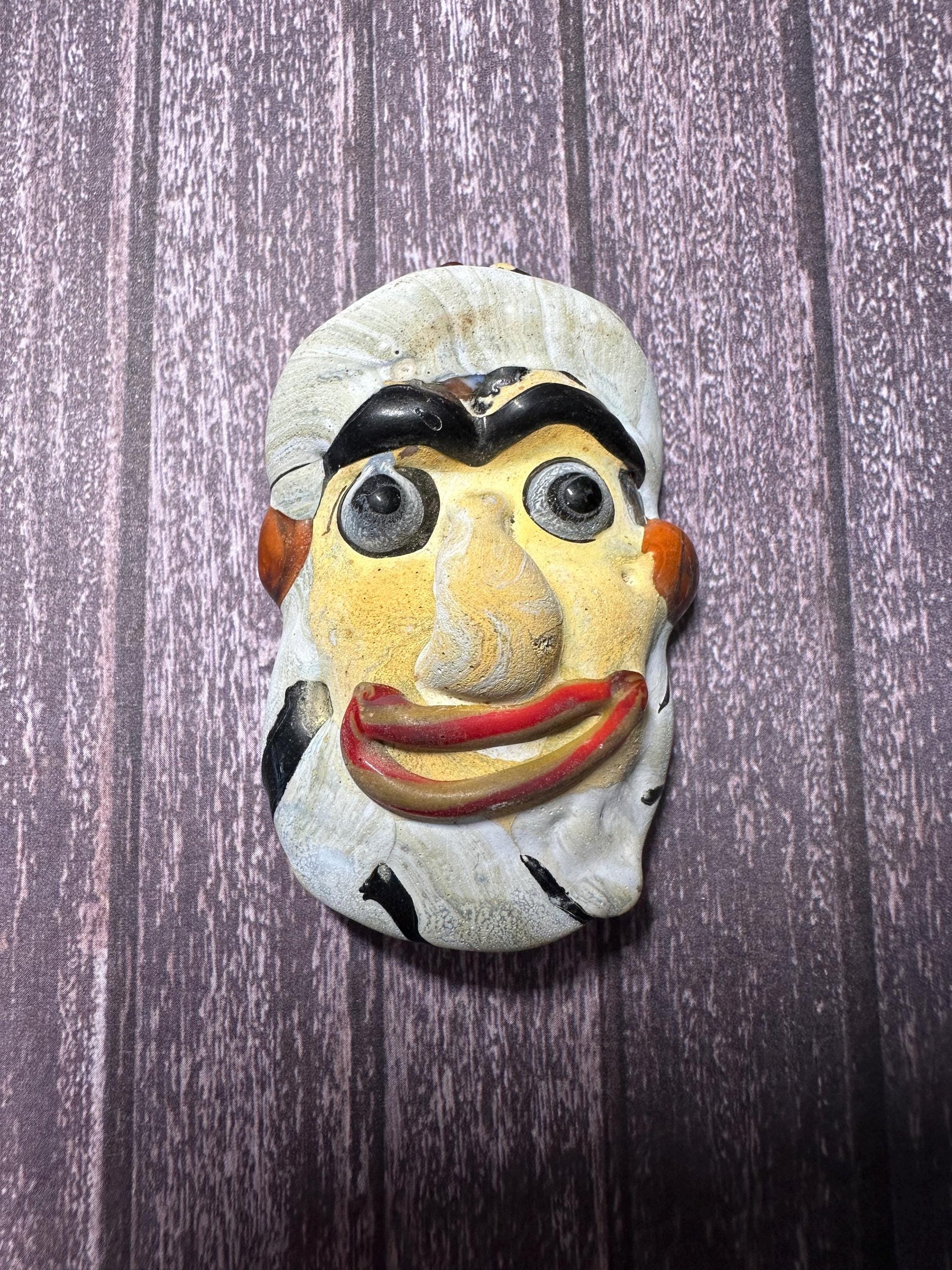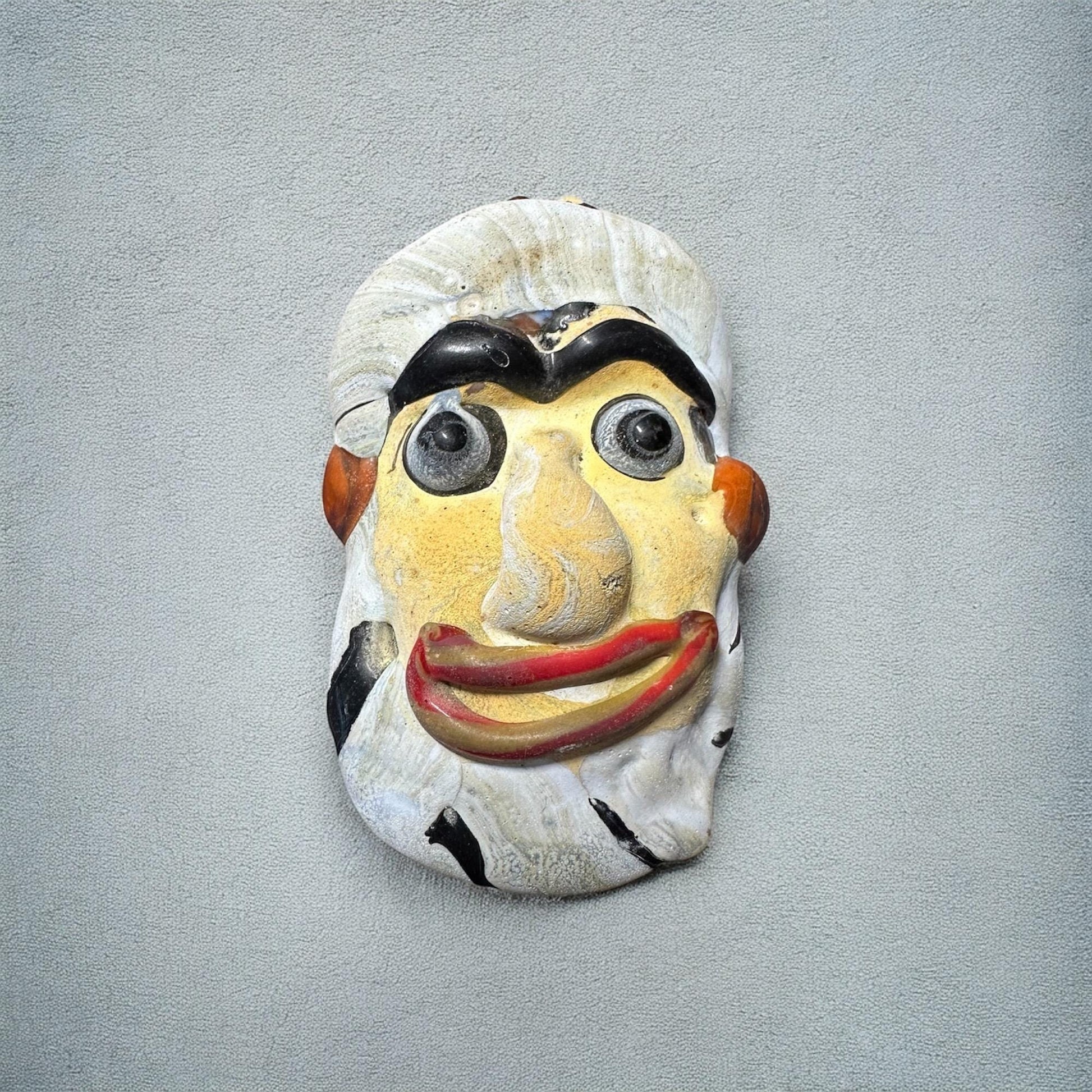 This unique pendant can serve as a remarkable collectible or a statement piece in jewelry design. Its detailed facial features and bold colors make it a testament to the artistry of ancient civilizations.
