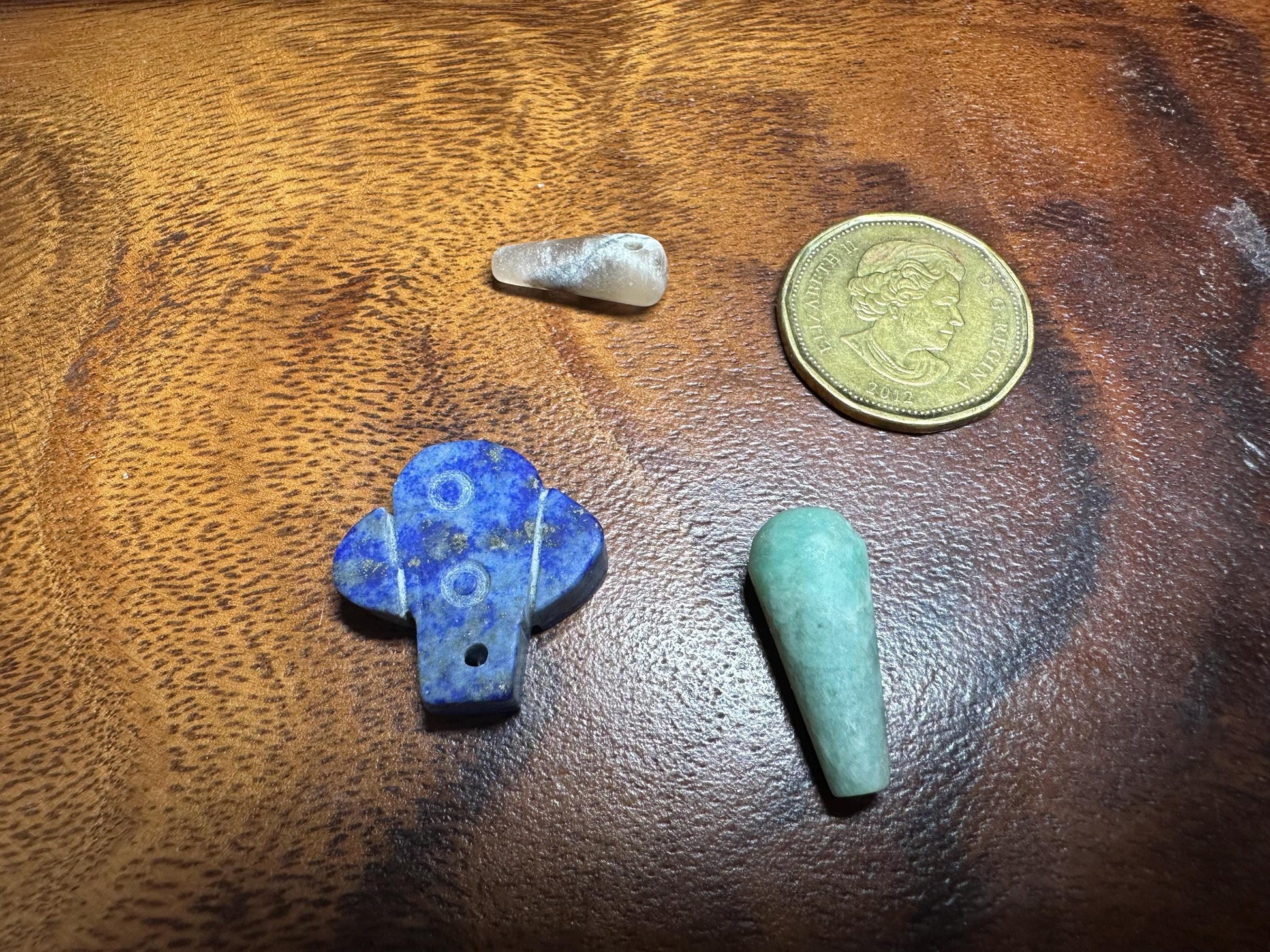 • Materials: Jade, Agate, Lapis Lazuli, possible serpentine and other mixed stones