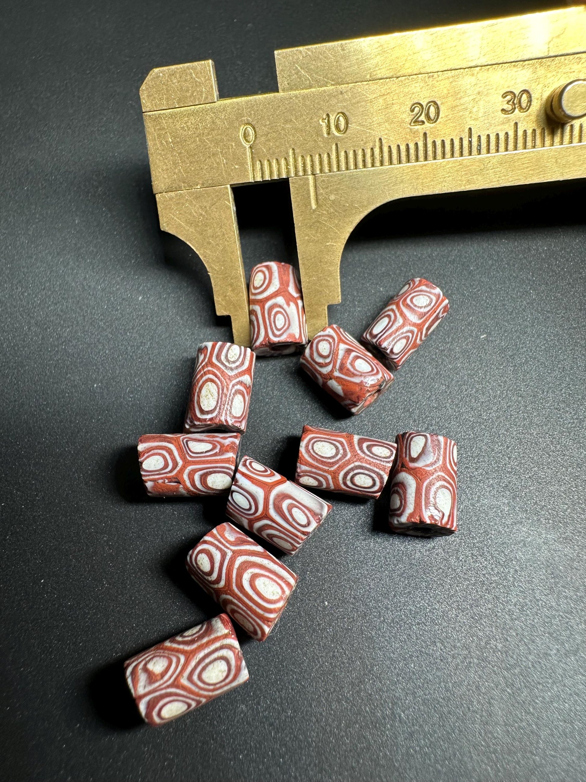 Discover the beauty of history with these antique Venetian Millefiori African trade beads. These hand-crafted glass beads were originally made in Venice and later traded across Africa. Each bead features intricate floral patterns in shades of red and white, showcasing the stunning millefiori technique. These beads are perfect for collectors, jewelry designers, or anyone who appreciates vintage and tribal art.