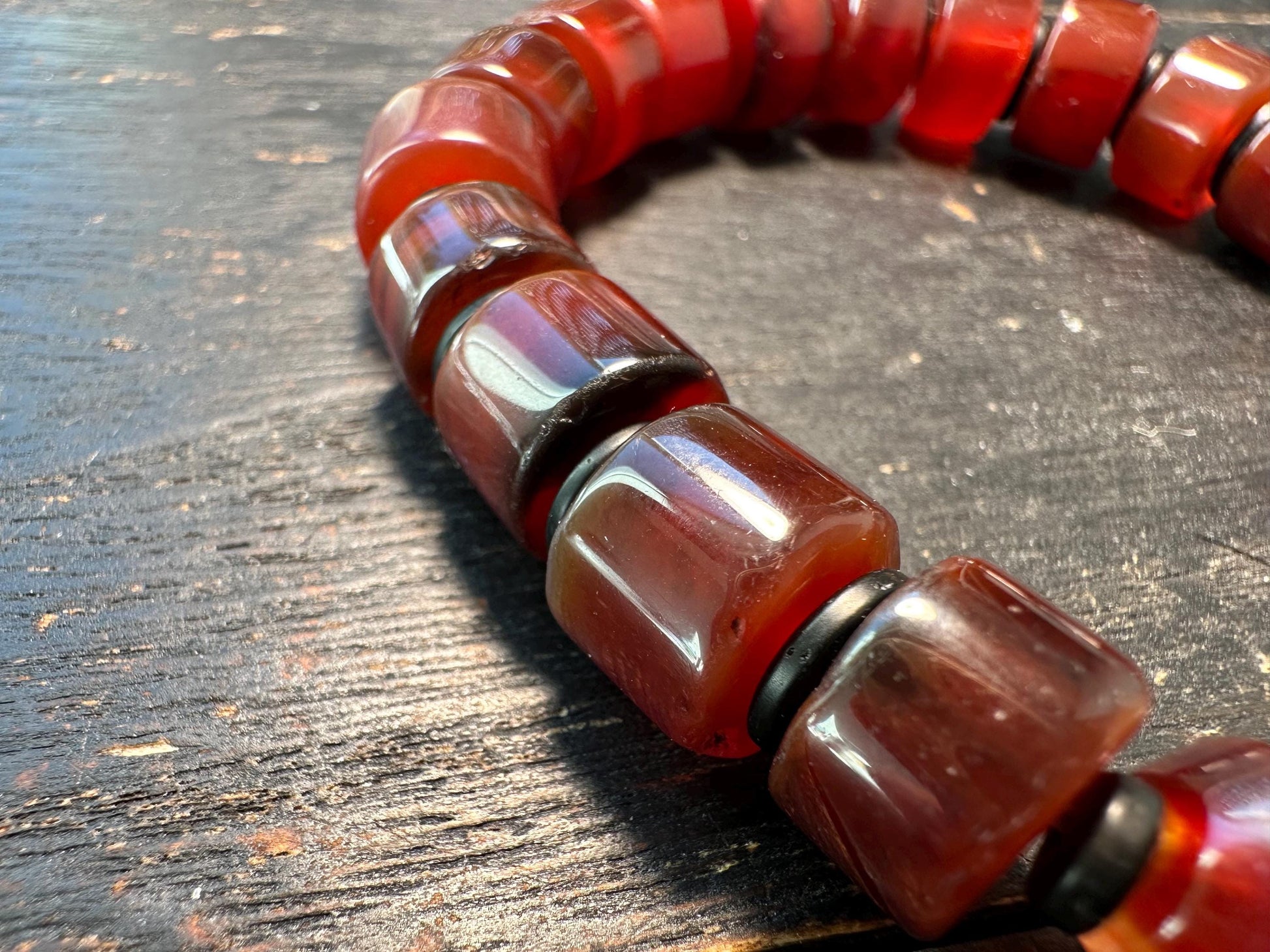 Tibetan Carnelian and Old Crystal Bracelet Nepal Style Mala Beads on Stretch Cord