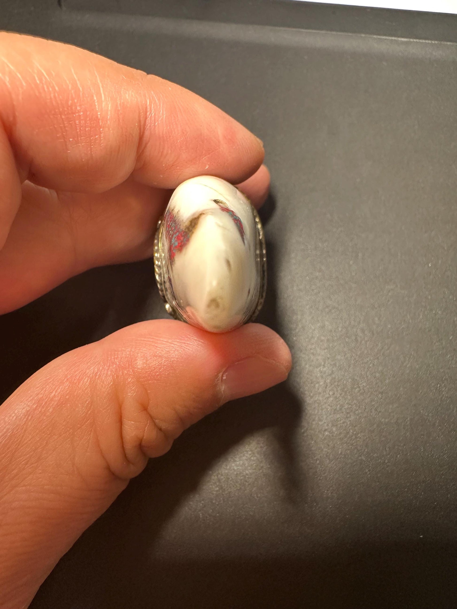 • Material: Natural sea shell, brass, imitation turquoise and coral inlay