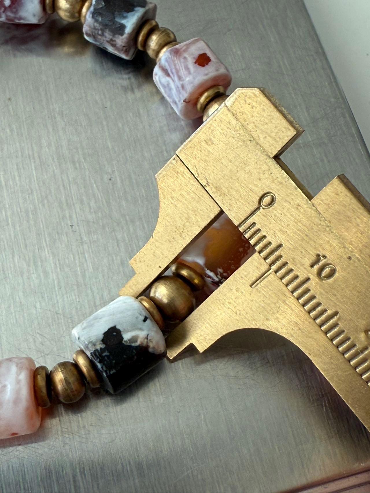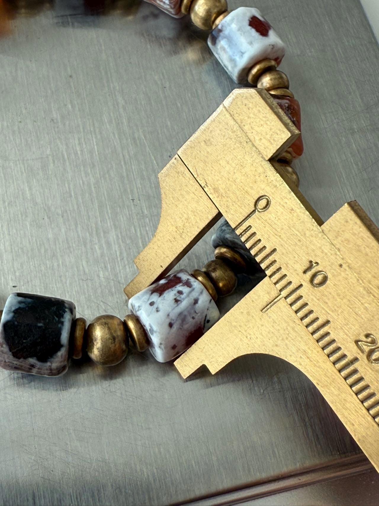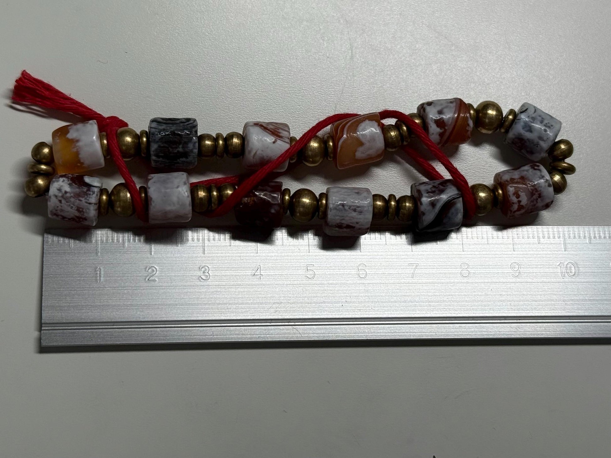 This unique, handcrafted Mala-inspired bracelet captures the essence of Tibetan tradition with a modern touch. Designed with high-quality brass beads and cube-shaped agate stones in earthy tones, each bead is carefully chosen to reflect a natural, spiritual aesthetic. This bracelet is perfect for those looking to add a meaningful piece to their collection, combining both beauty and cultural inspiration.The brass beads bring a warm, antique look, while the natural stone beads offer a grounding energy that many find calming and balancing. Whether for meditation, mindfulness, or as a stylish accessory, this bracelet is both versatile and meaningful.