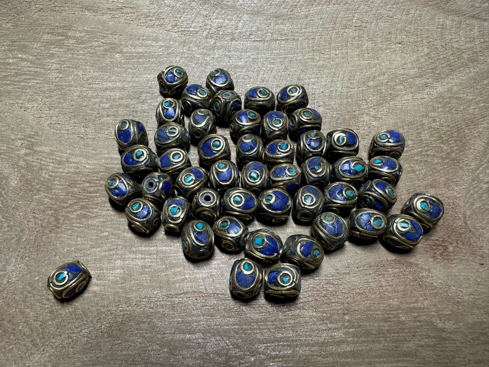 Tibetan Tribal Lapis and Turquoise Inlaid Beads, Nepal Beads Handcrafted for Jewellery making