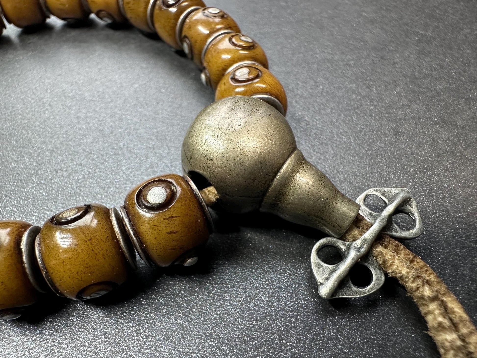 Yak bone malas are widely used in Tibetan Buddhism for meditation, mantra recitation, and as spiritual reminders of impermanence and strength. The addition of metal inlay dots enhances the traditional look and symbolic energy. The white brass guru bead acts as the focal point, signifying the beginning and end of each spiritual cycle.