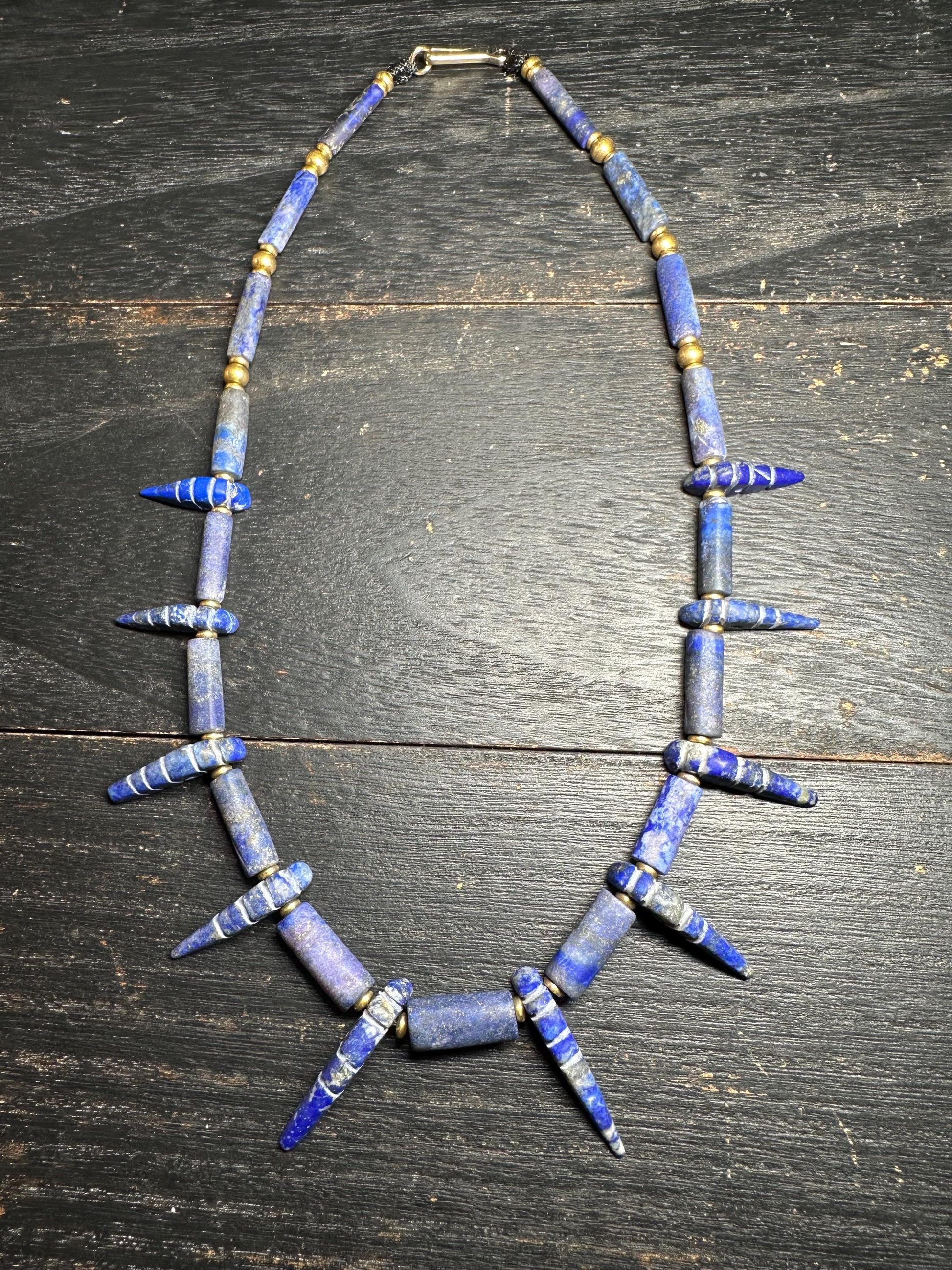 Unique Old Antique Natural Lapis Lazuli Necklace with Spikes Handcrafted Tribal Jewelry from Afghanistan