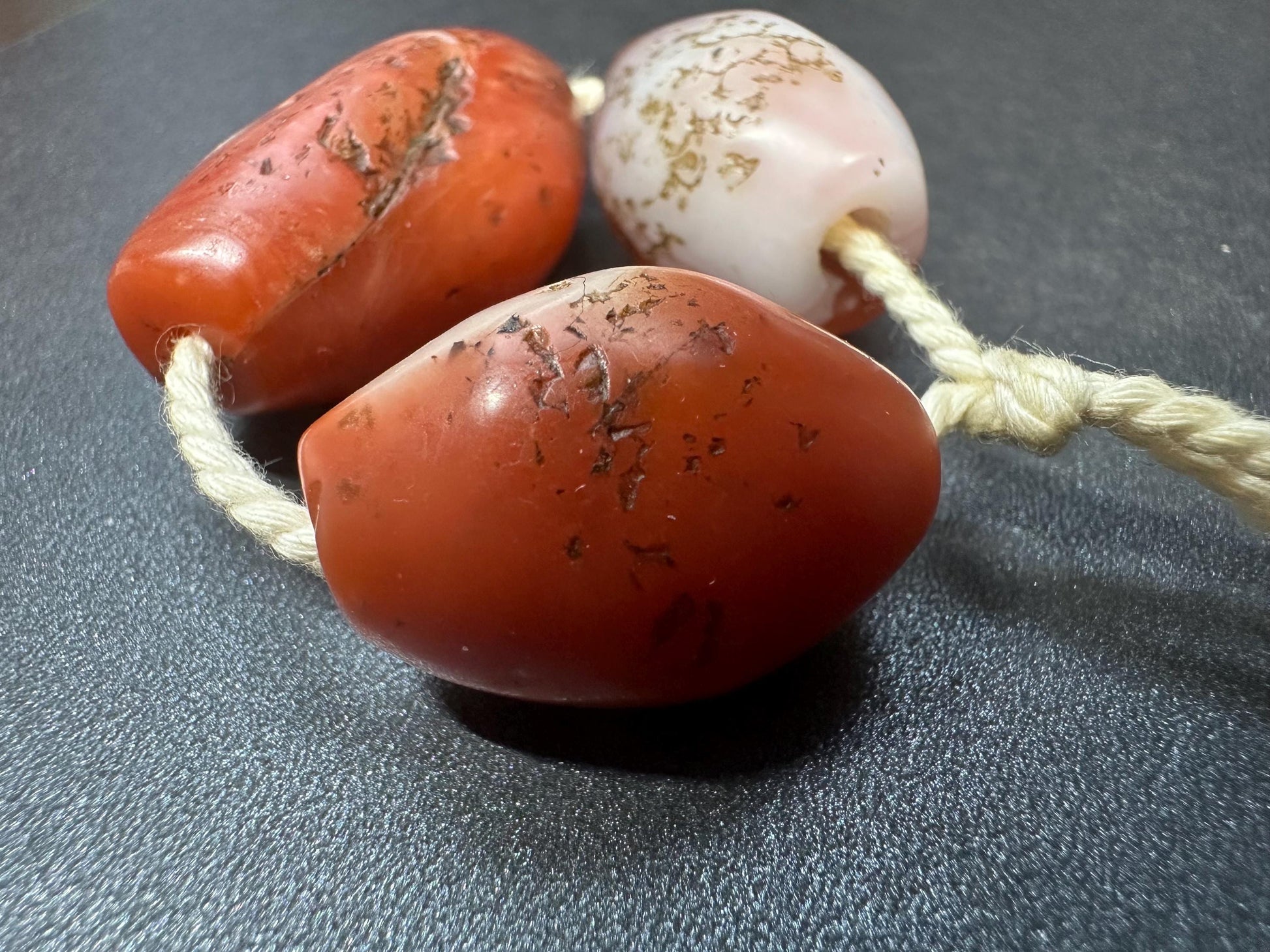 Discover the timeless beauty of these vintage Tibetan red agate barrel beads, crafted naturally over decades with stunning red to orange hues and unique white banding. Each bead measures approximately 23-32mm, perfect as large focal beads for mala bracelets, necklaces, or prayer beads. These authentic old agate beads feature natural weathering, traditional Tibetan hand-polished finish, and rich patina that tell a story of age and spiritual heritage. Ideal for collectors, artisans, and devotees looking for genuine Tibetan prayer beads or high-quality craft materials. Perfect for customizing Tibetan malas or unique jewelry pieces.